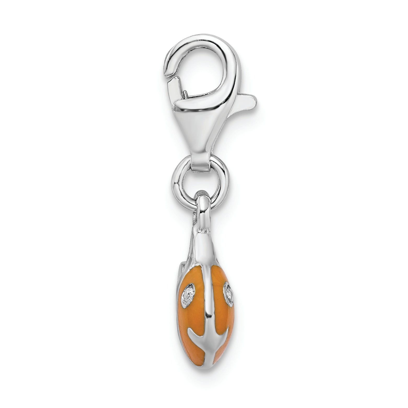 Discover the Sterling Silver Rhodium-Plated 3D Enameled Fish Charm, a perfect blend of elegance and fun for your jewelry collection. Crafted from 925 sterling silver with dazzling rhodium plating, this charm captivates with its vibrant pink and yellow enamel accents. It's designed with a solid, dimensional form that brings the fish to life. The charm measures 21 mm in length, with a secure lobster clasp for easy attachment. This themed pendant offers a splash of color and style, making it an ideal addition to your charm bracelet or necklace. The Sterling Silver Rhodium-Plated 3D Enameled Fish Charm is a standout piece, perfect for any fashion-savvy individual.