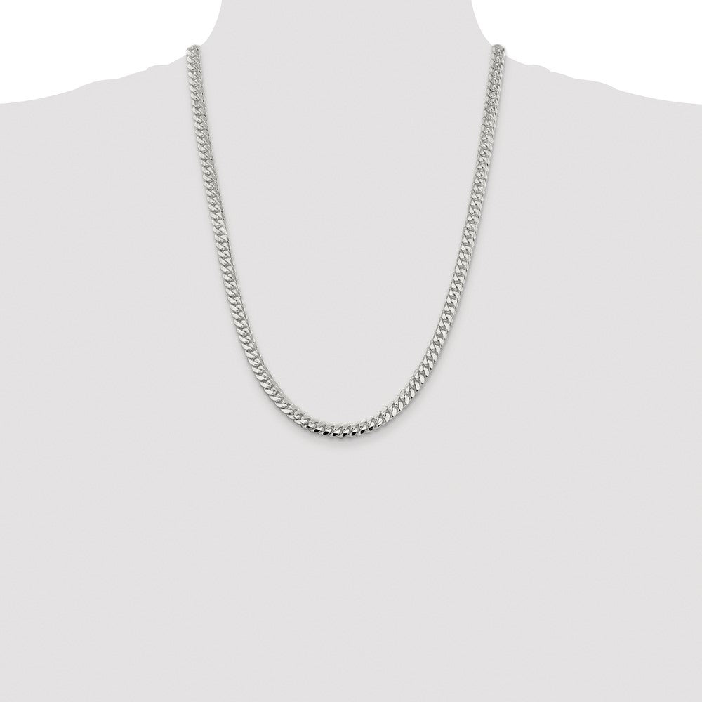 Sterling Silver Rhodium-plated 6.4mm Polished Domed Curb 24 Inch Chain