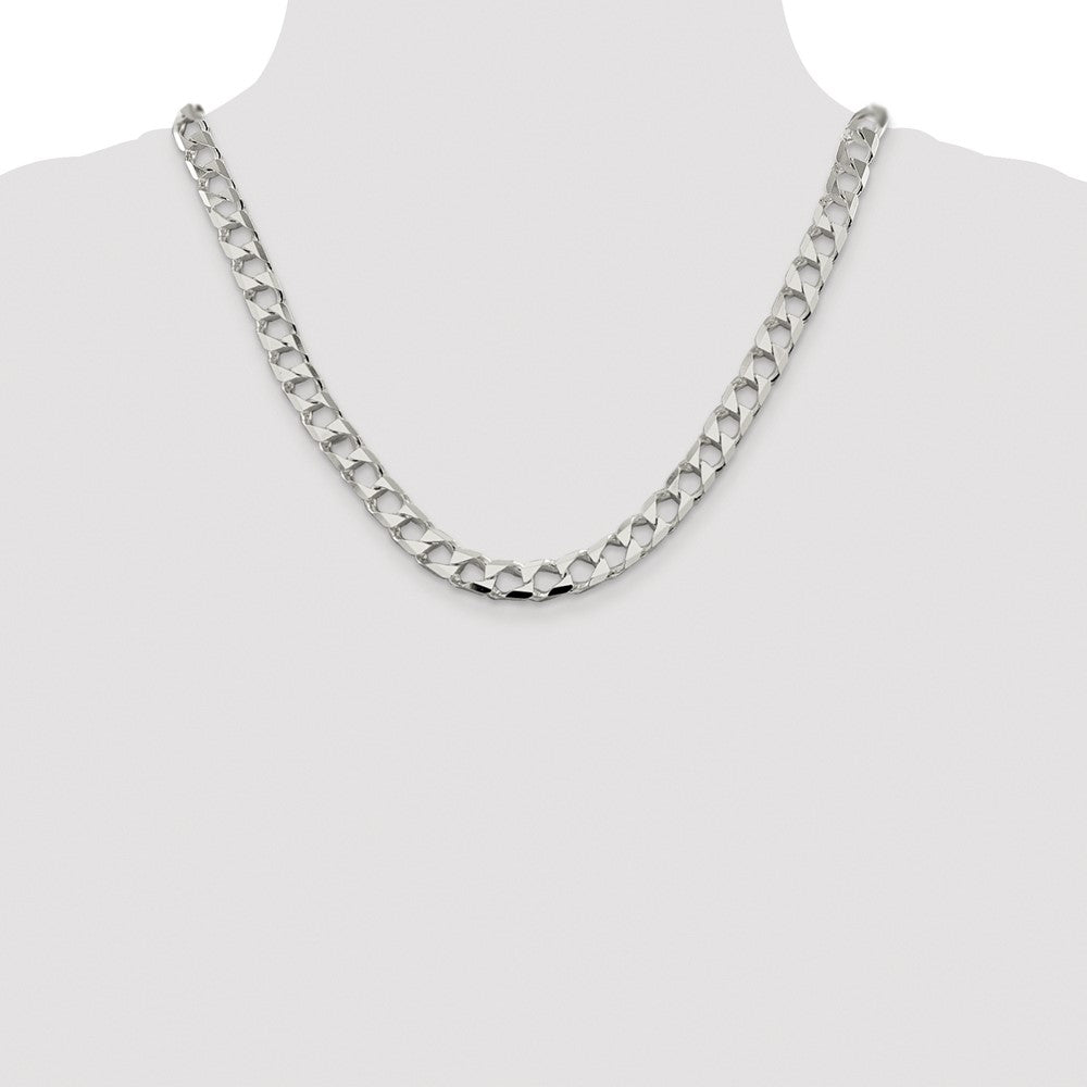 Sterling Silver Rhodium-plated 8.6mm D/C Square Curb 20 Inch Chain