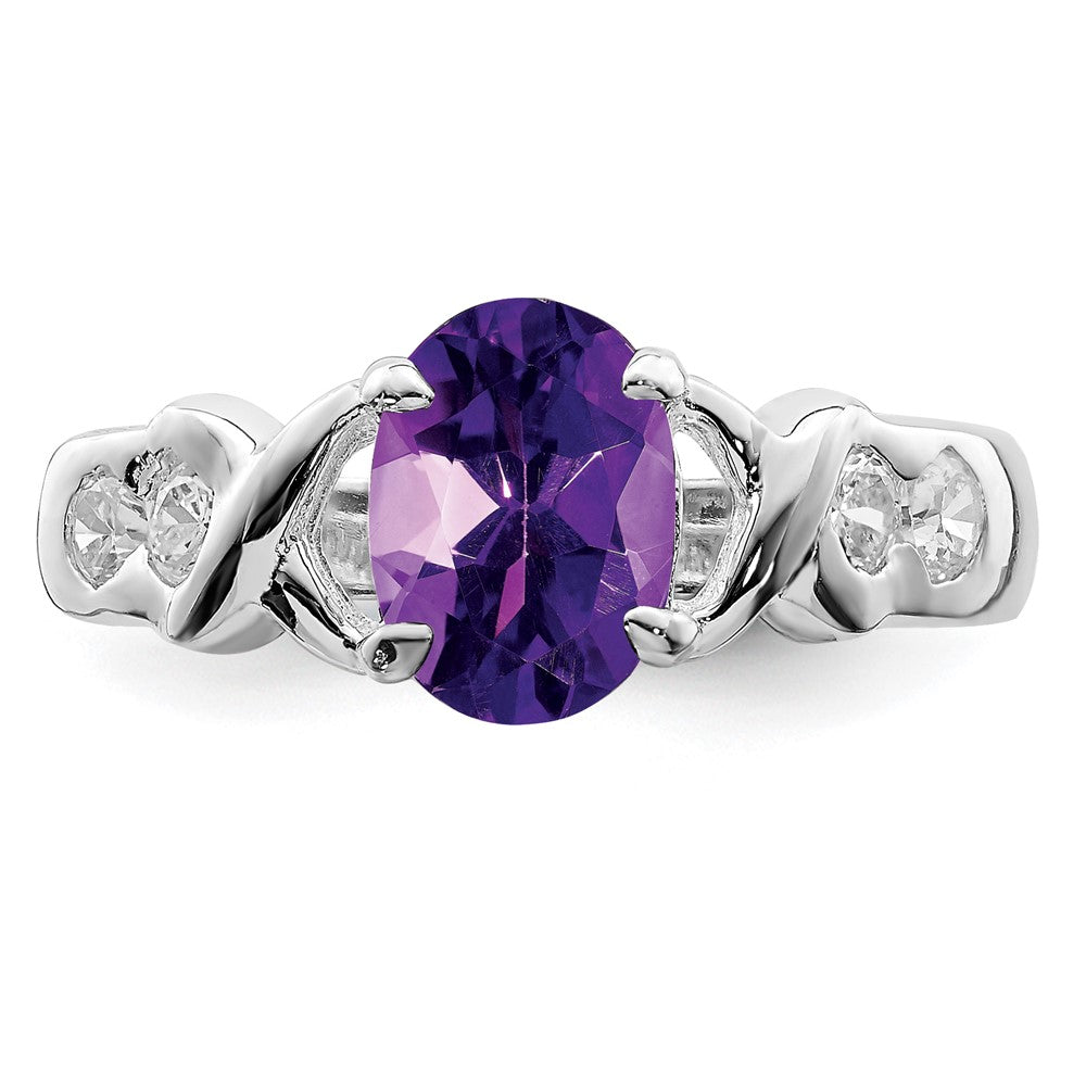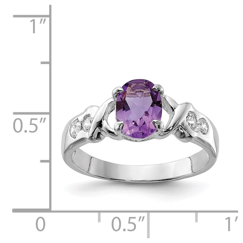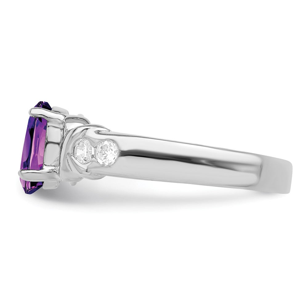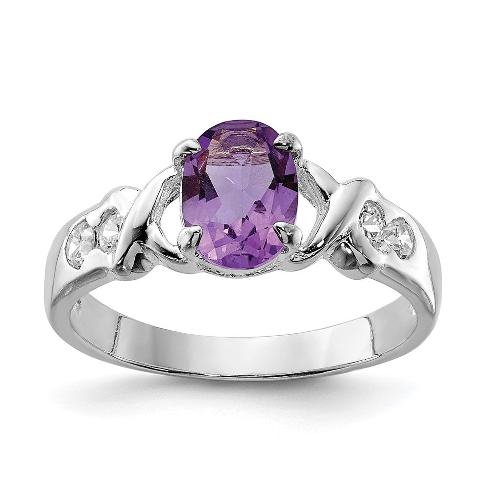 Sterling Silver Rhodium-plated Amethyst and CZ Ring