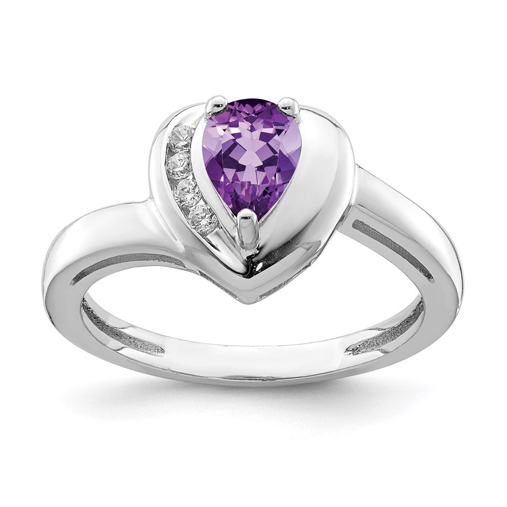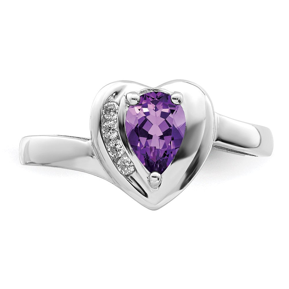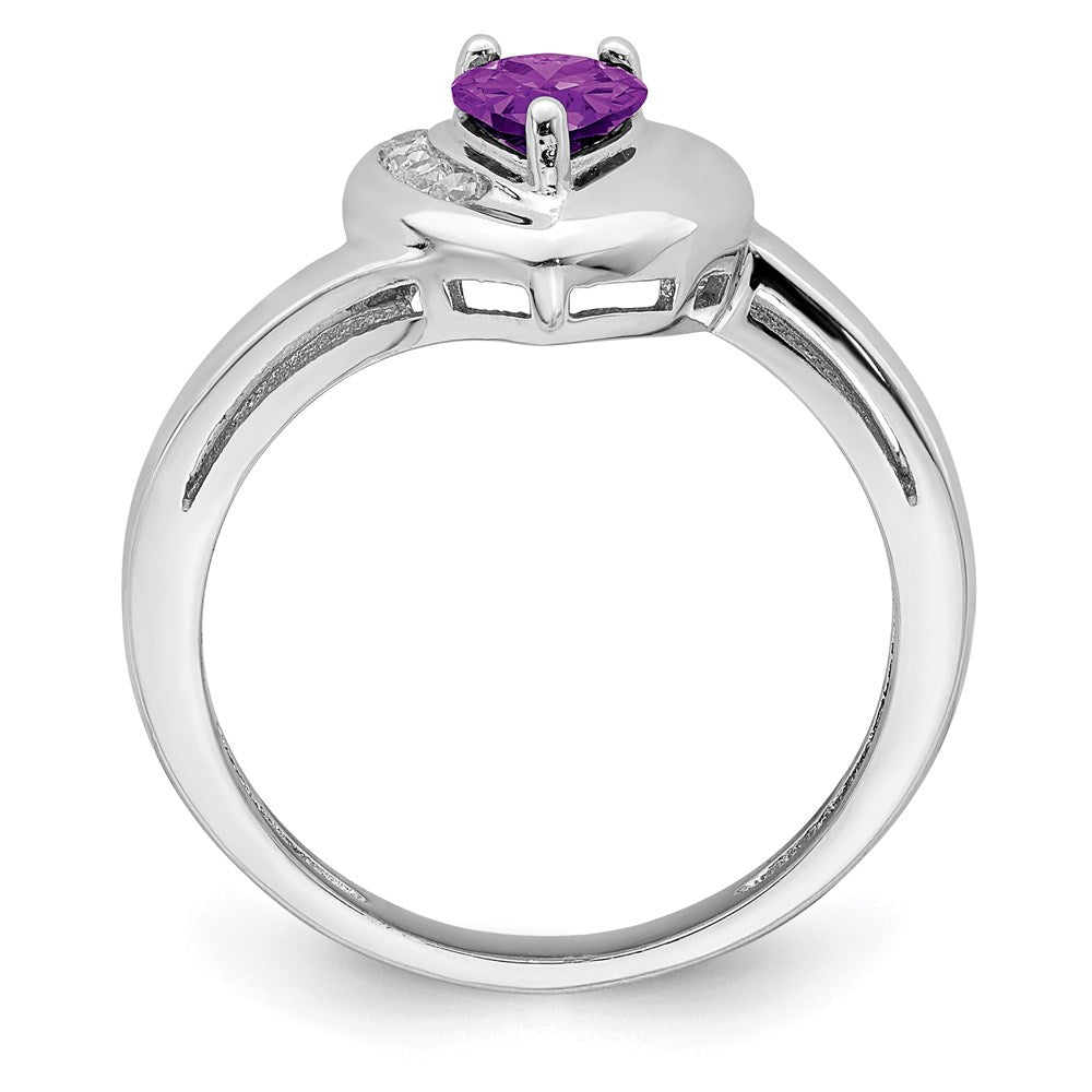 Sterling Silver Rhodium-plated Amethyst and White Topaz Heart Ring