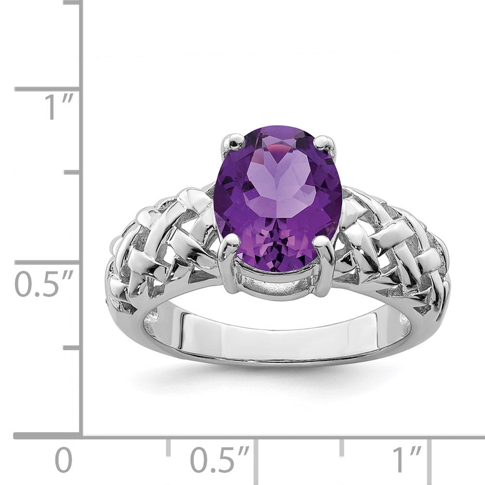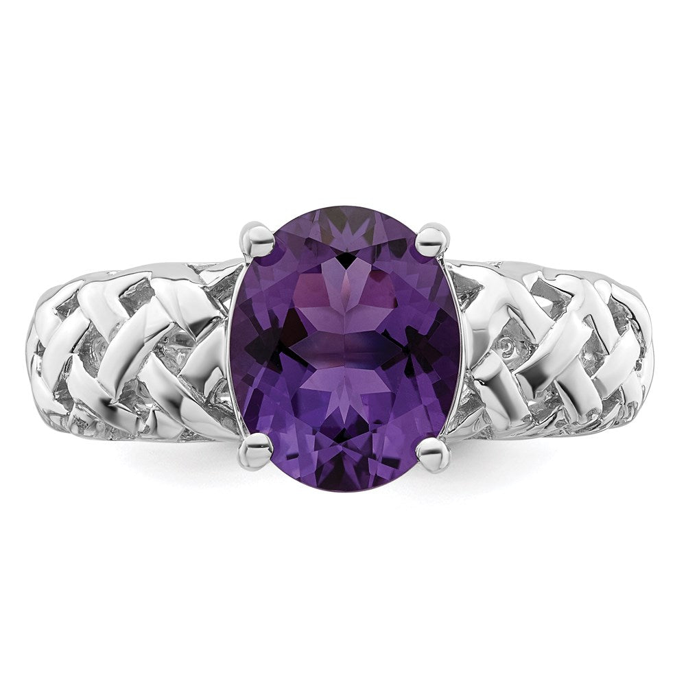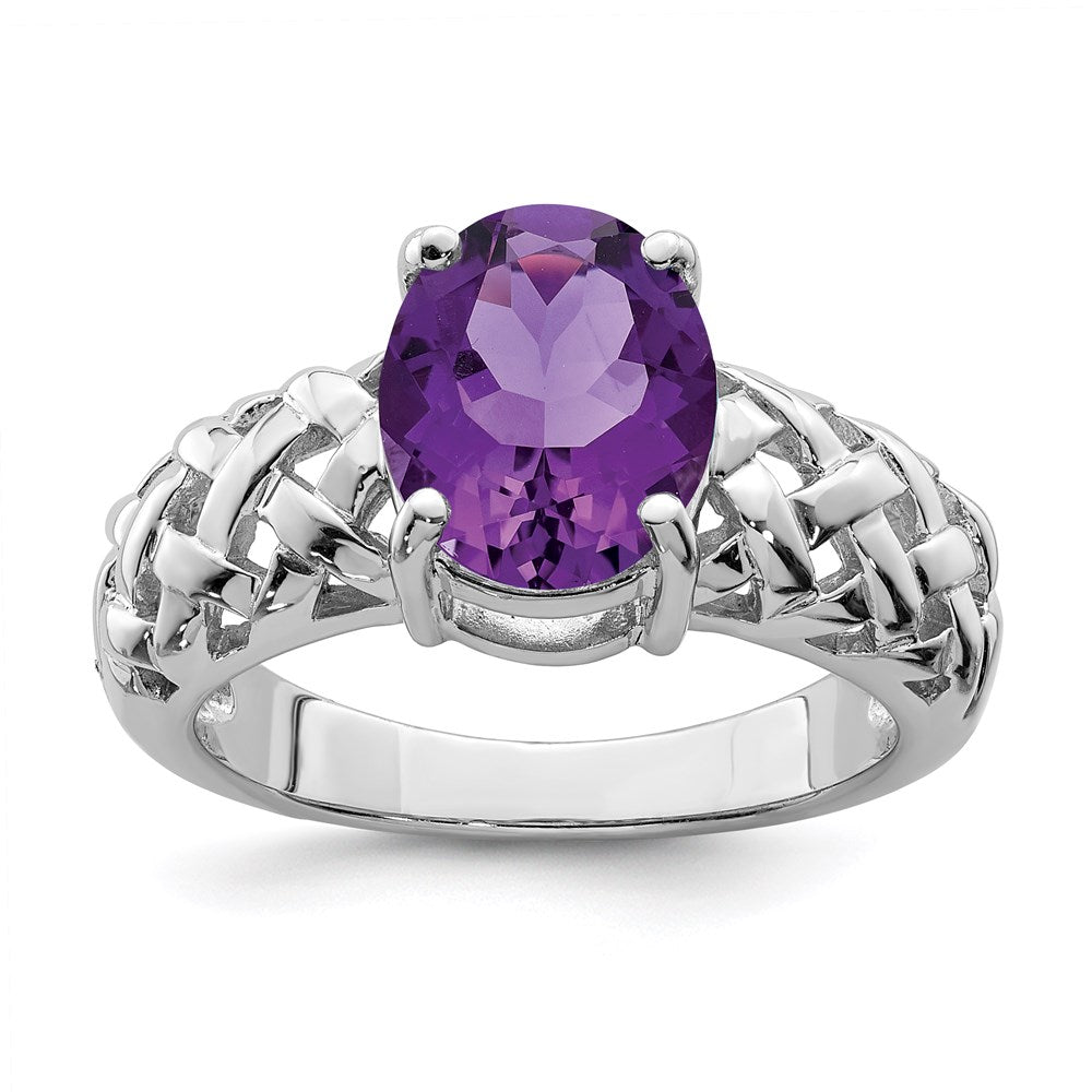 Sterling Silver Rhodium-plated Amethyst Ring