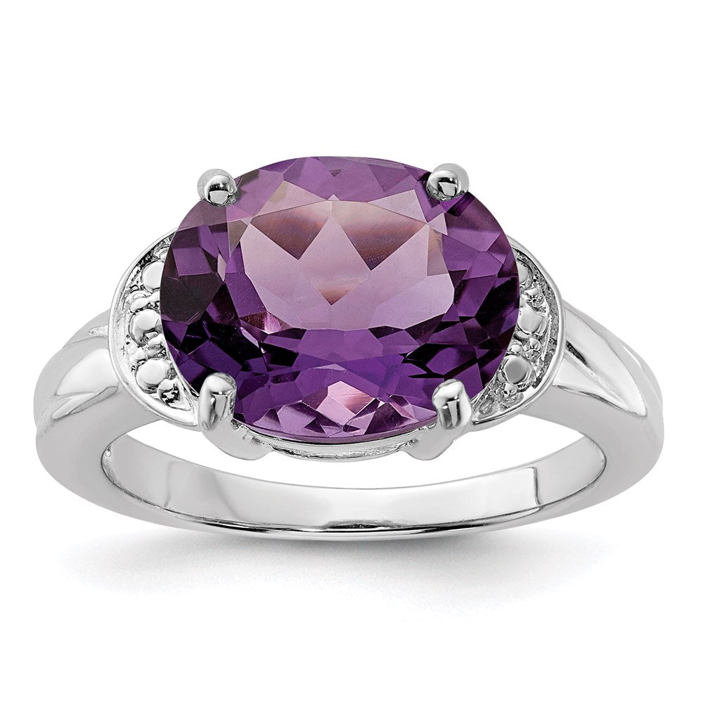 Sterling Silver Rhodium-plated Amethyst Ring