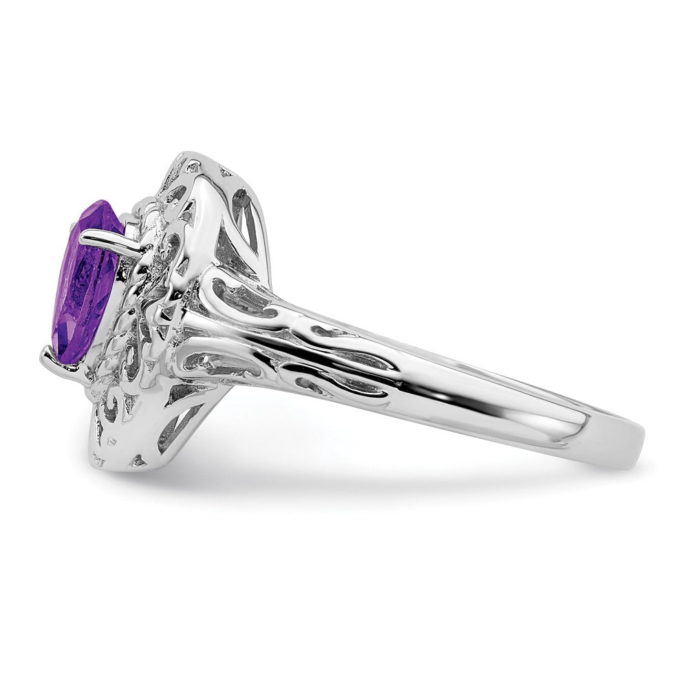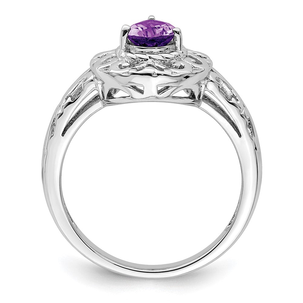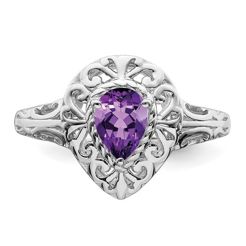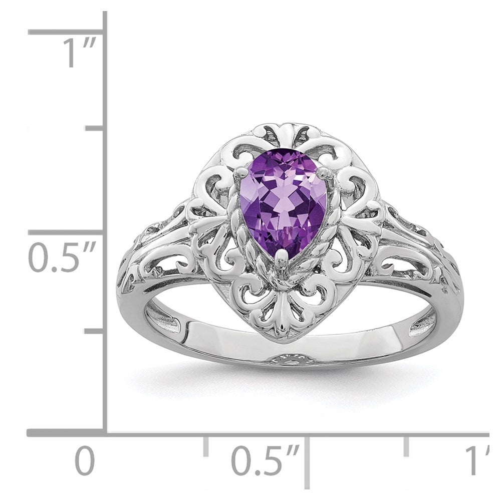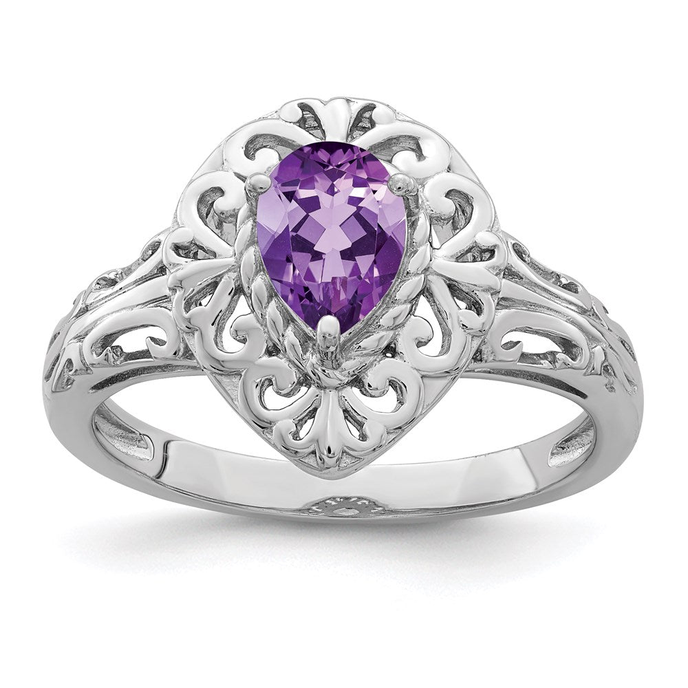 Sterling Silver Rhodium Plated Amethyst Teardrop Ring