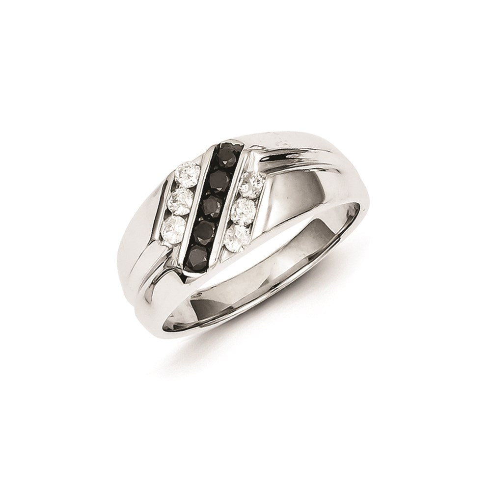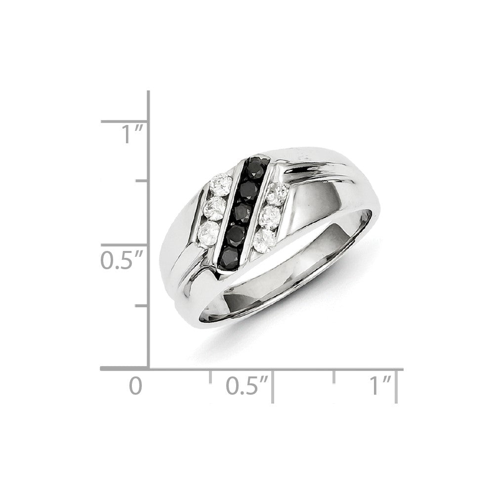 Sterling Silver Rhodium Plated Black and White Diamond Men's Ring