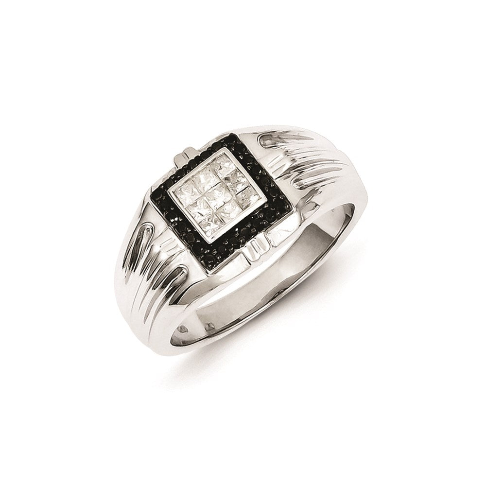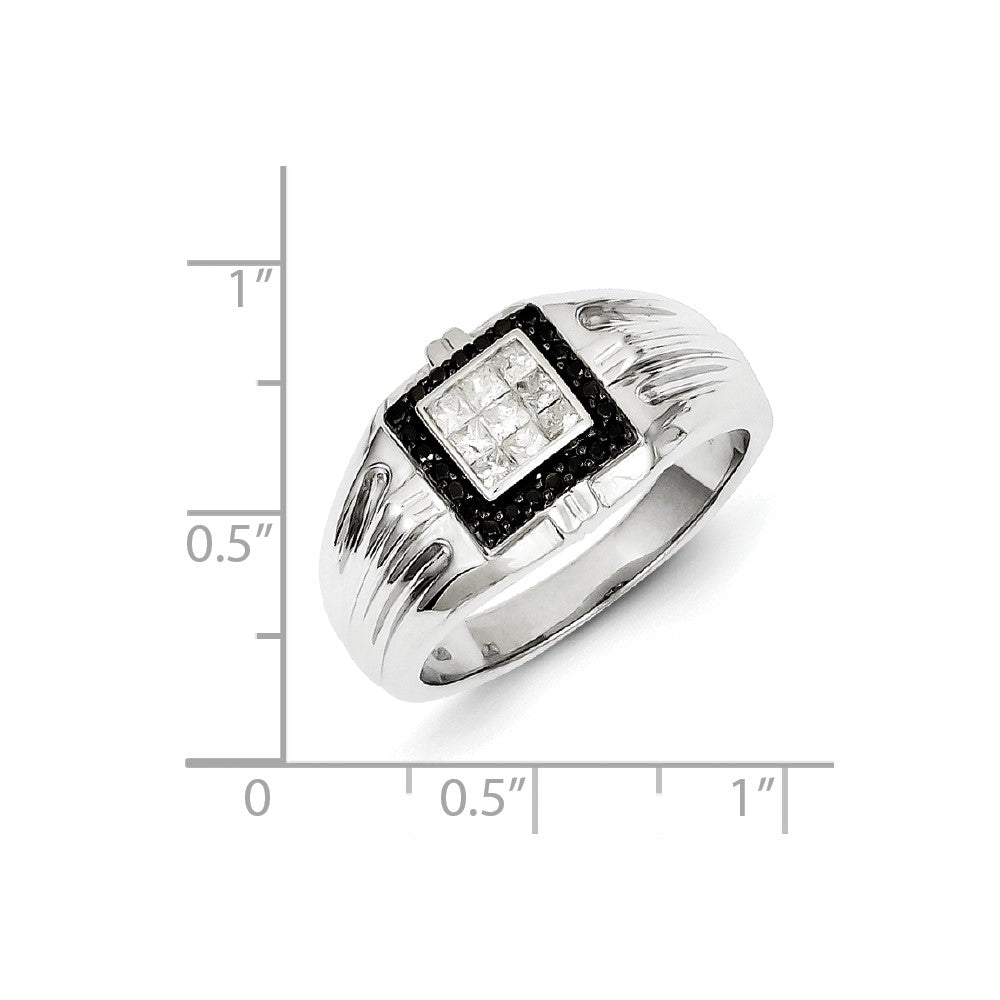 Sterling Silver Rhodium Plated Black and White Diamond Men's Ring