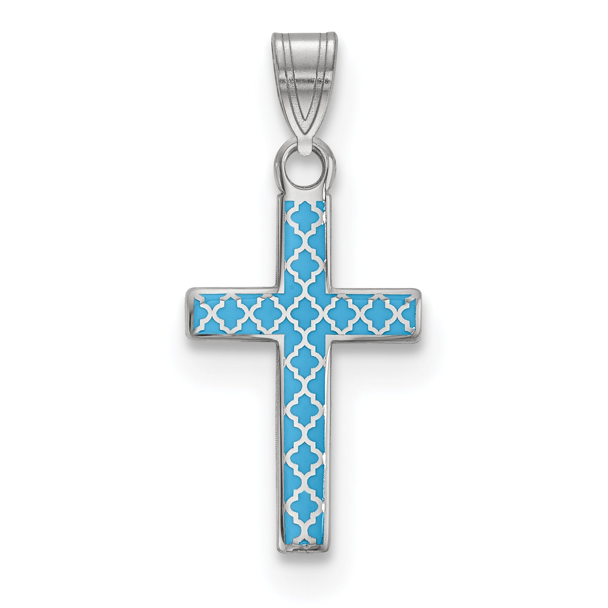 The Sterling Silver Rhodium-Plated Blue Enameled Cross Hatch Charm shines with elegance fit for any jewelry collection. Crafted from 925 sterling silver and plated with lustrous rhodium, this charm features a unique blue enameled cross-hatch design that stands out. It's the perfect pendant for those seeking a blend of classic and contemporary style. At 18.23mm in length and 11.61mm in width, its petite size adds a touch of sophistication to any accessory. The charm's silver tone enhances its timeless appeal, making it an ideal choice for personal or gift purposes. Add this exquisite piece to your collection and enjoy its effortless charm.