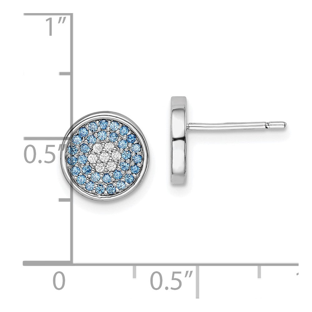 Sterling Silver Rhodium plated Blue Spinel and CZ Post Earrings