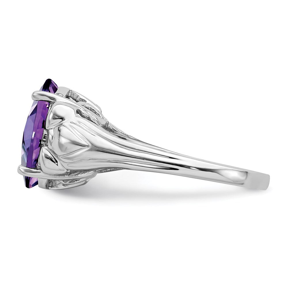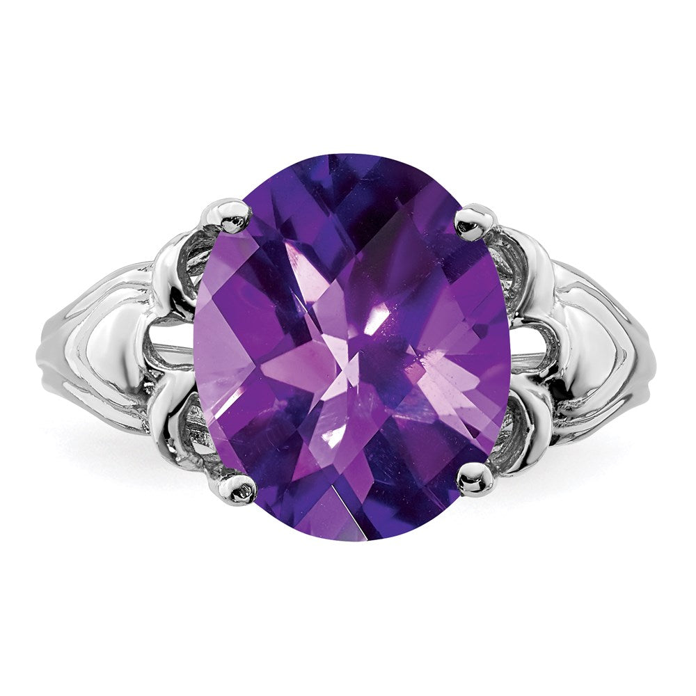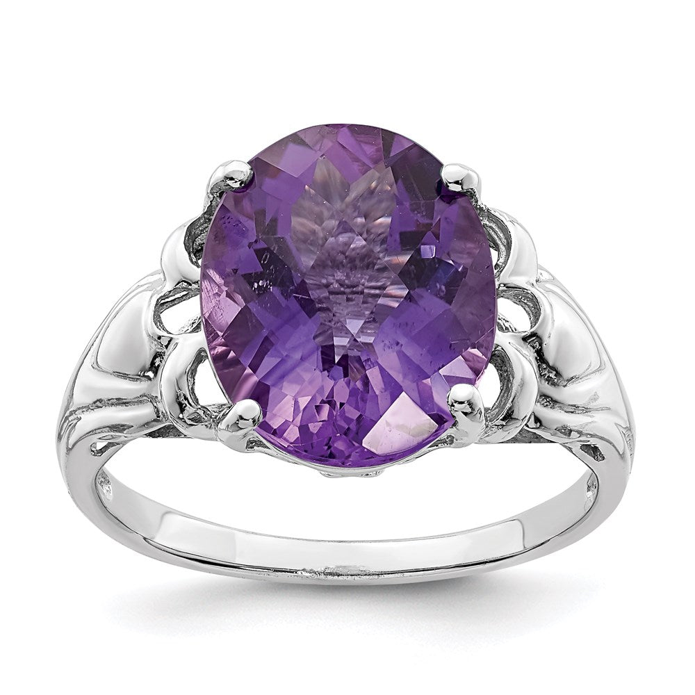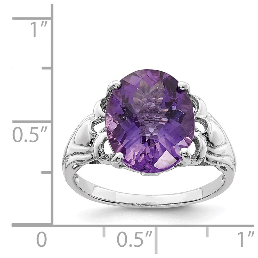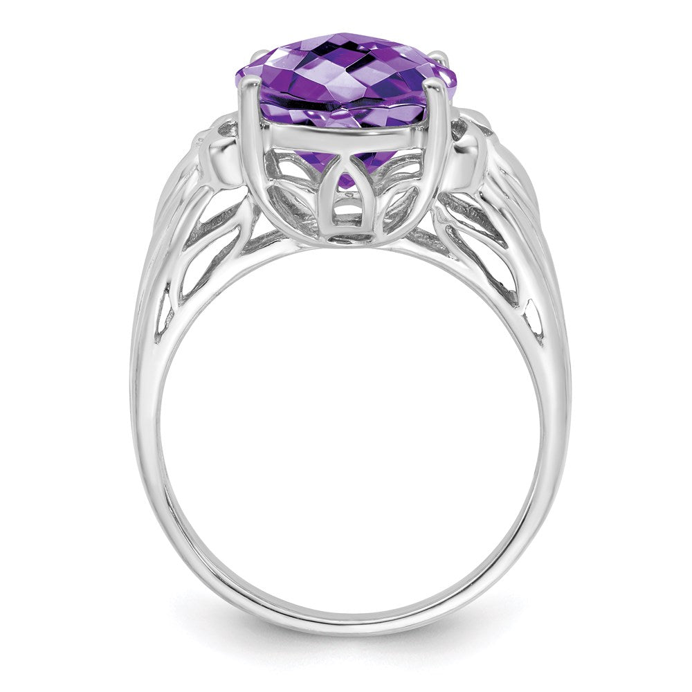 Sterling Silver Rhodium-plated Checker-Cut Amethyst Ring
