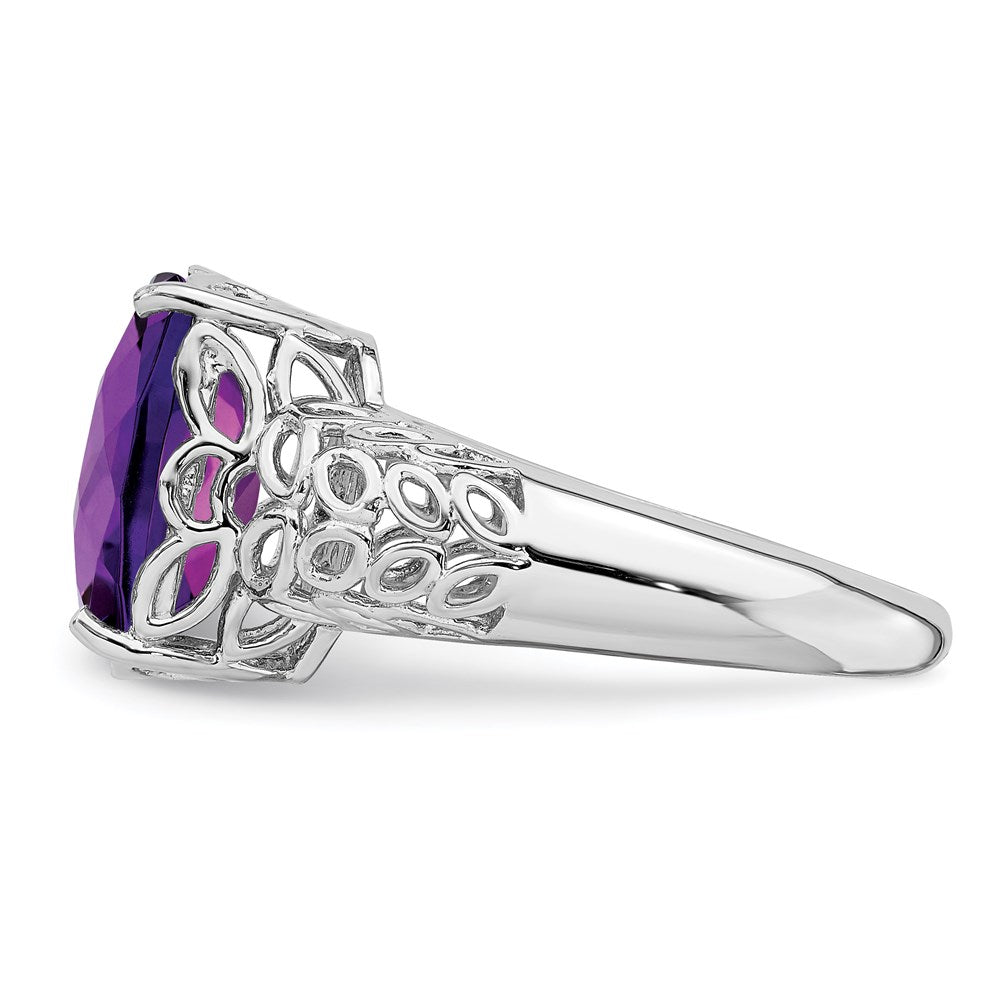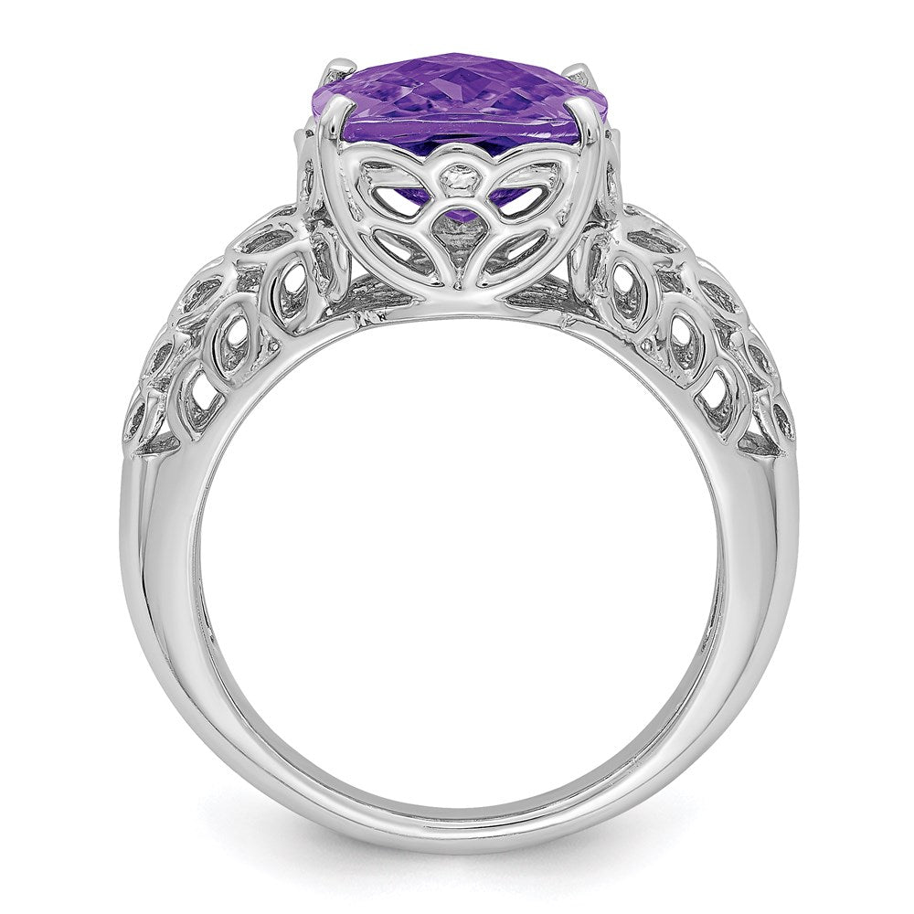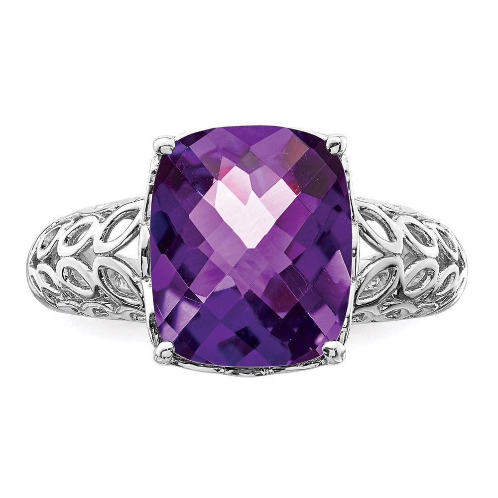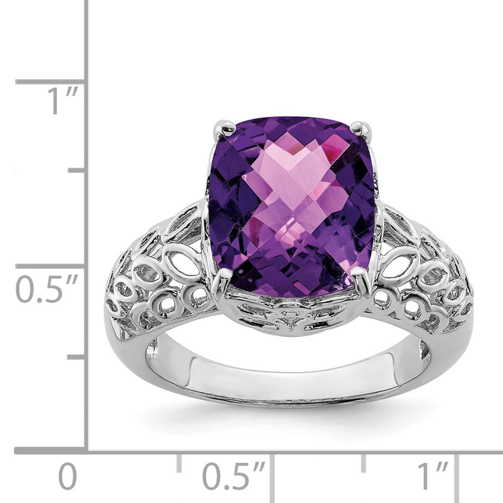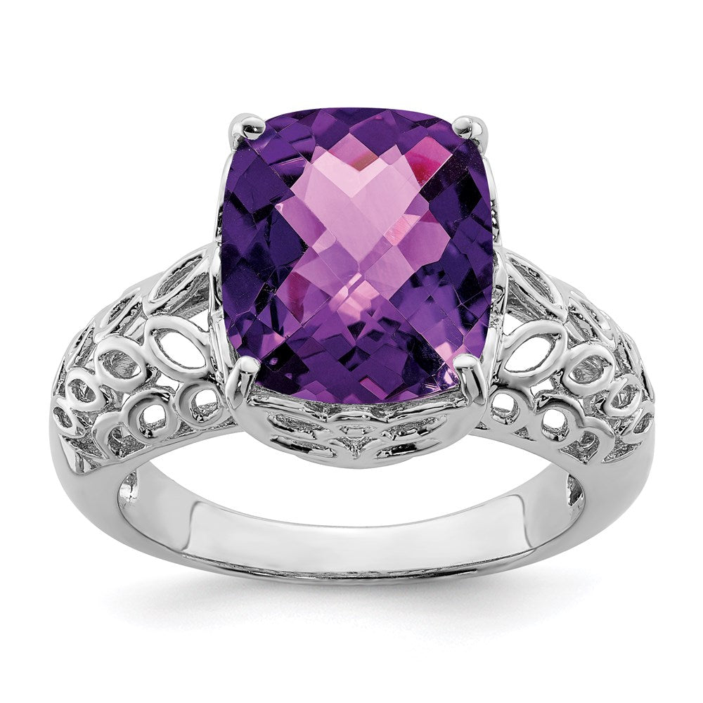 Sterling Silver Rhodium-plated Checker-Cut Amethyst Ring