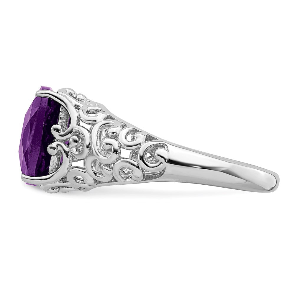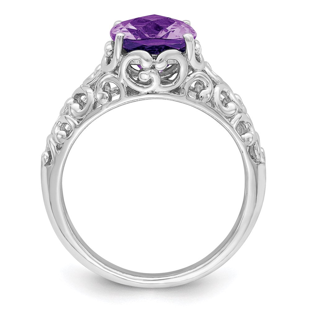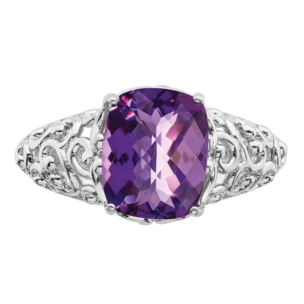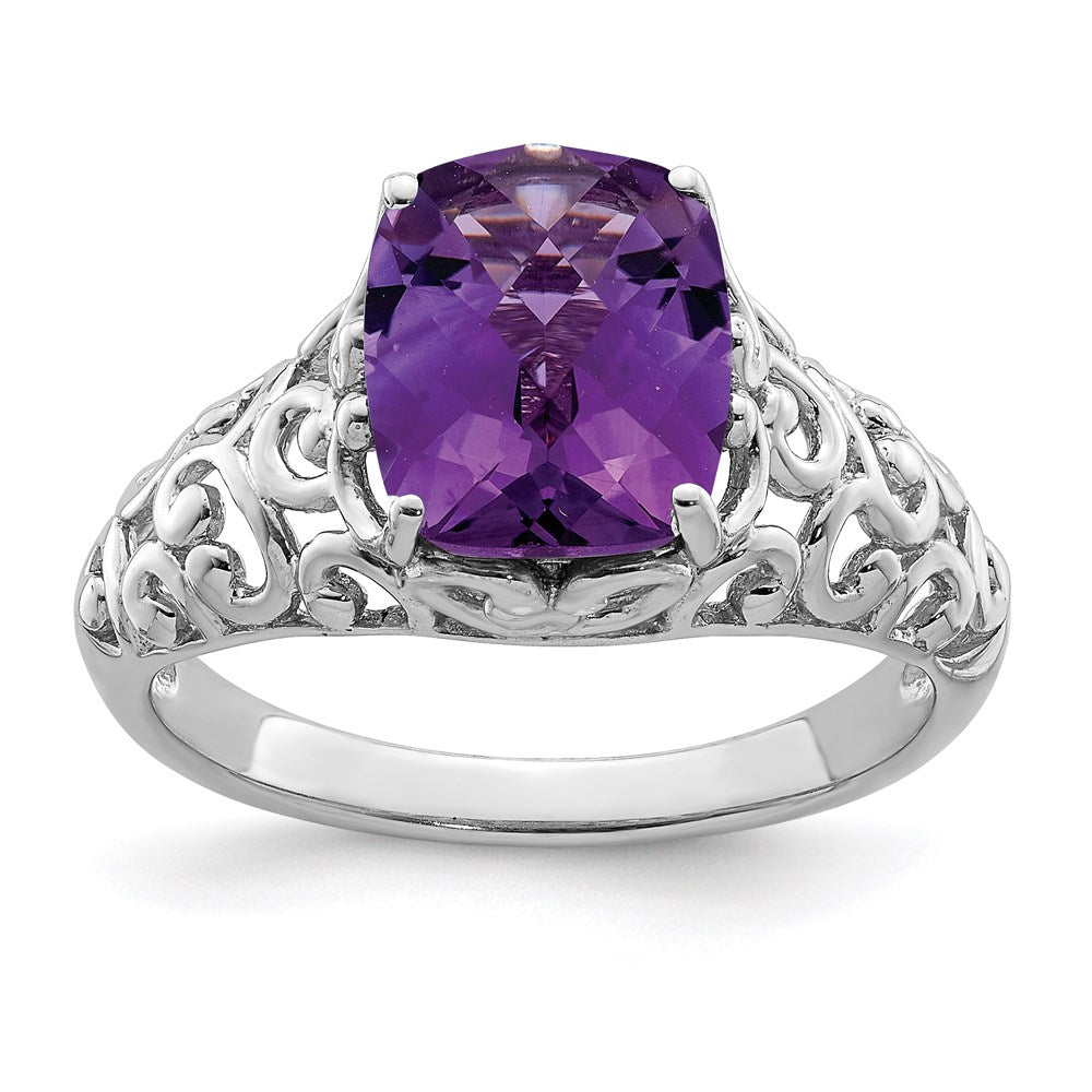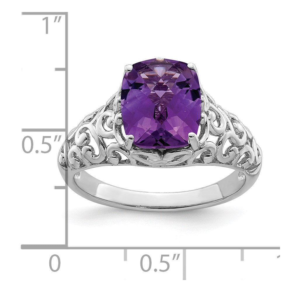 Sterling Silver Rhodium-plated Checker-Cut Amethyst Ring