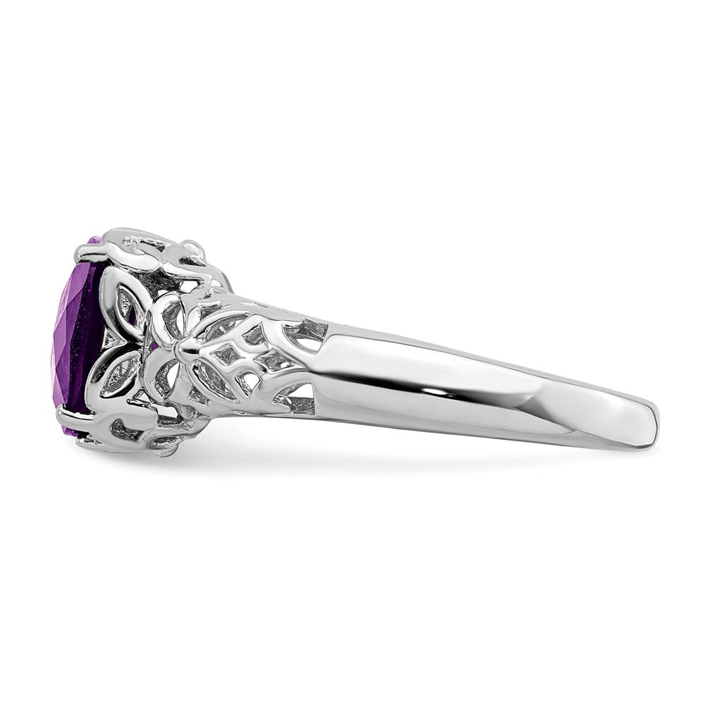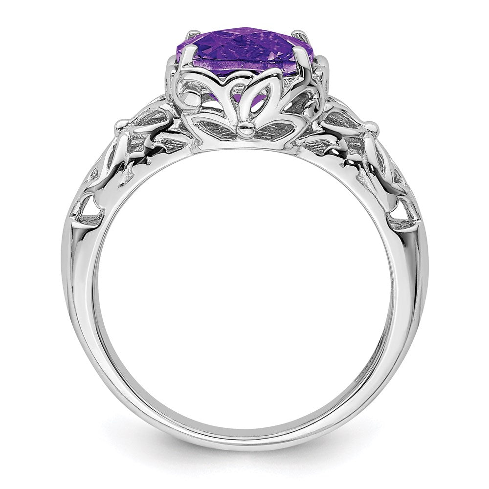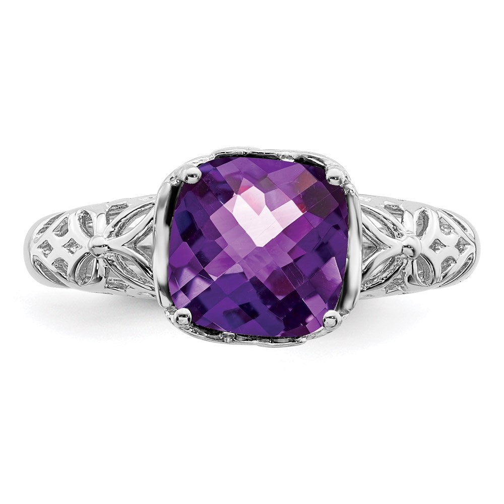 Sterling Silver Rhodium-plated Checker-Cut Amethyst Ring
