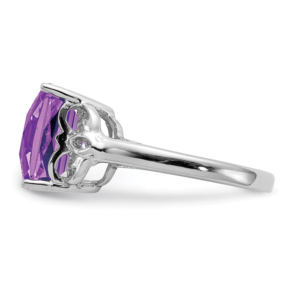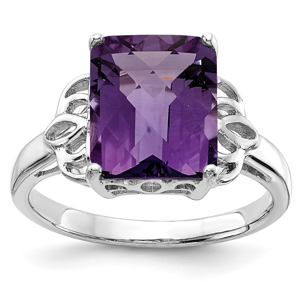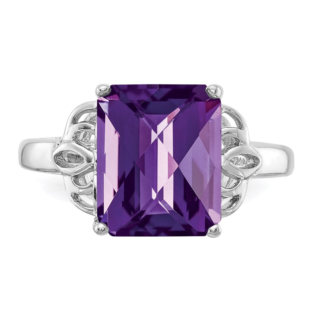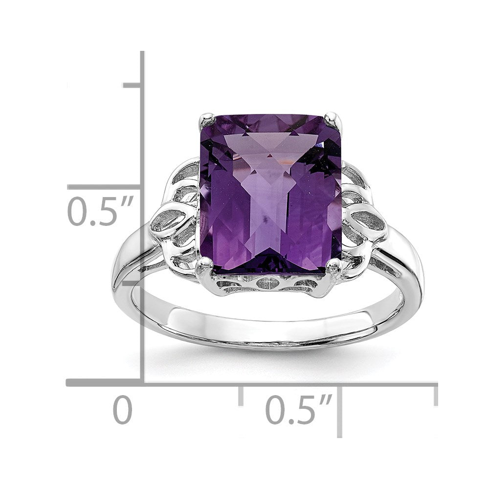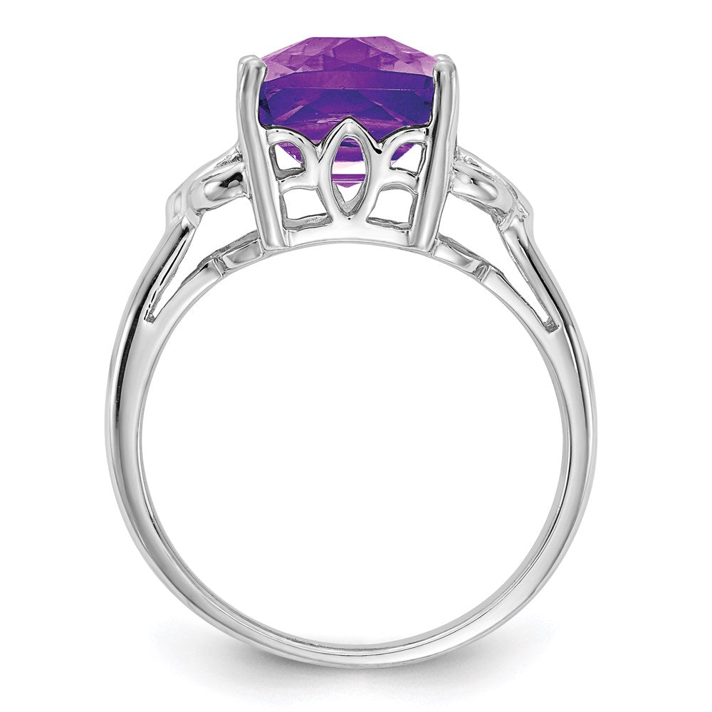 Sterling Silver Rhodium-plated Checker-Cut Amethyst Ring