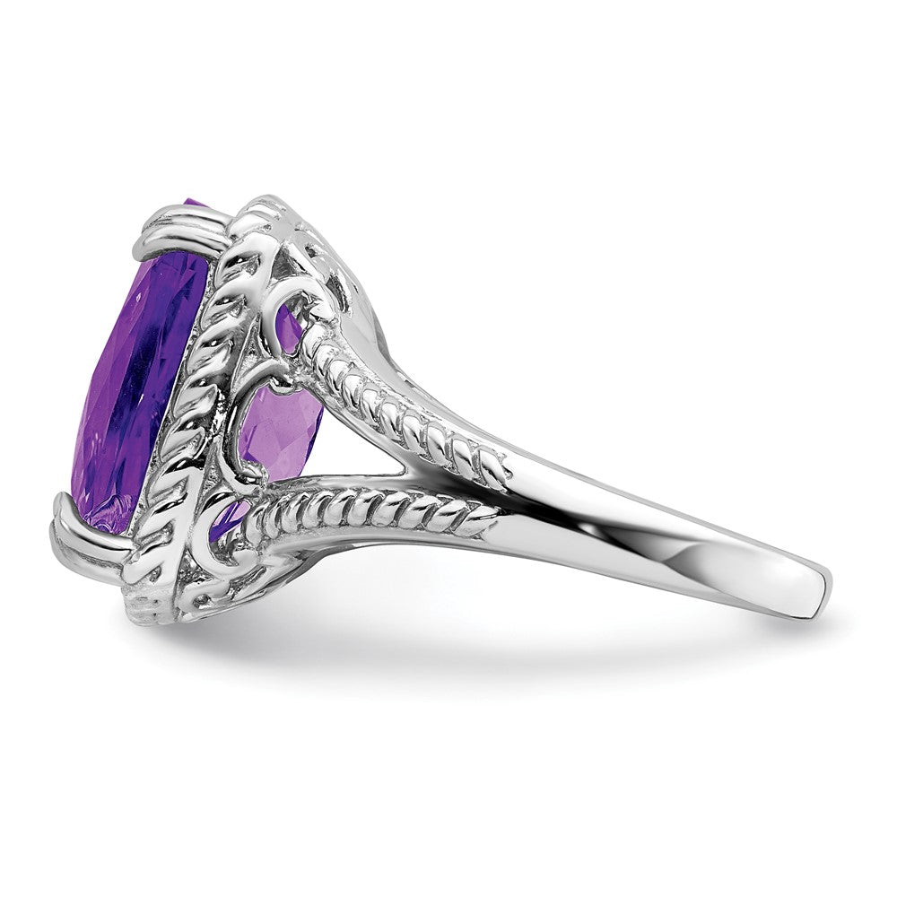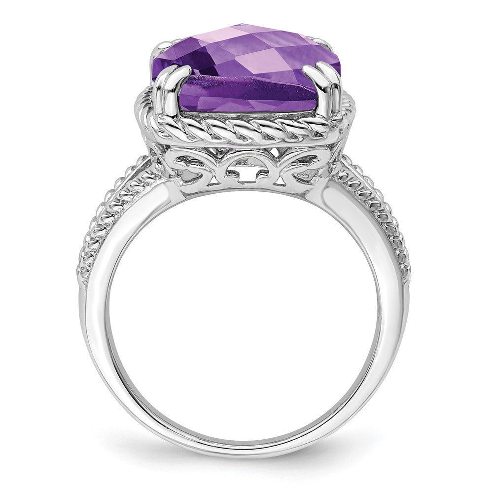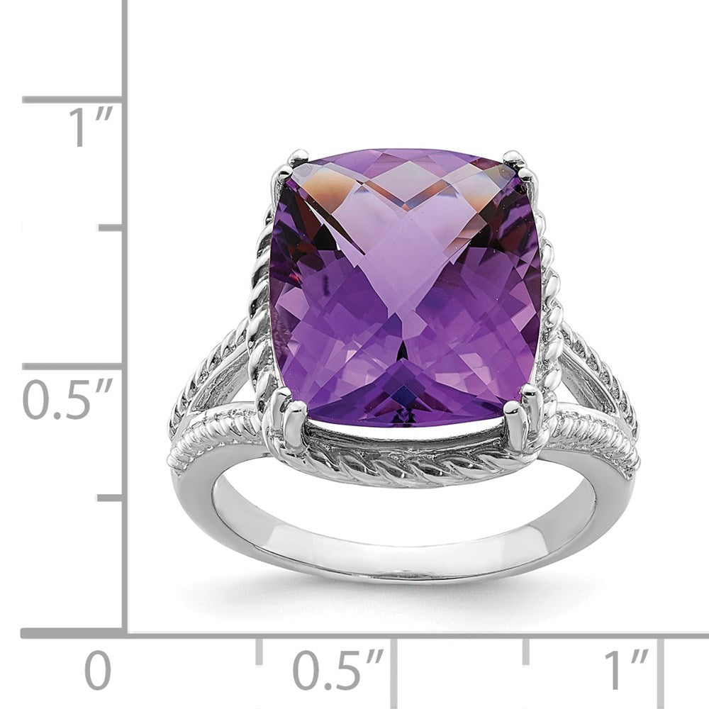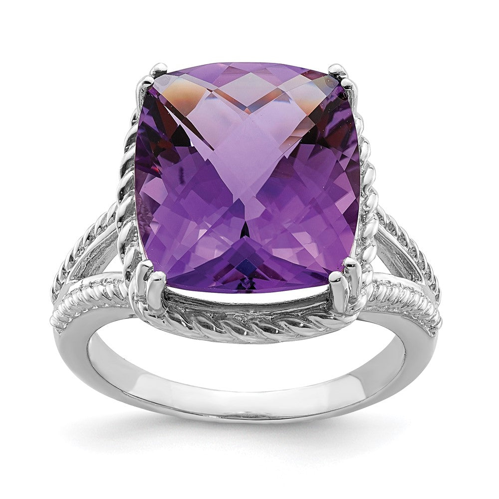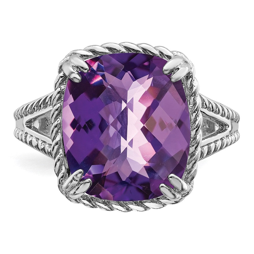 Sterling Silver Rhodium-plated Checker-Cut Amethyst Ring