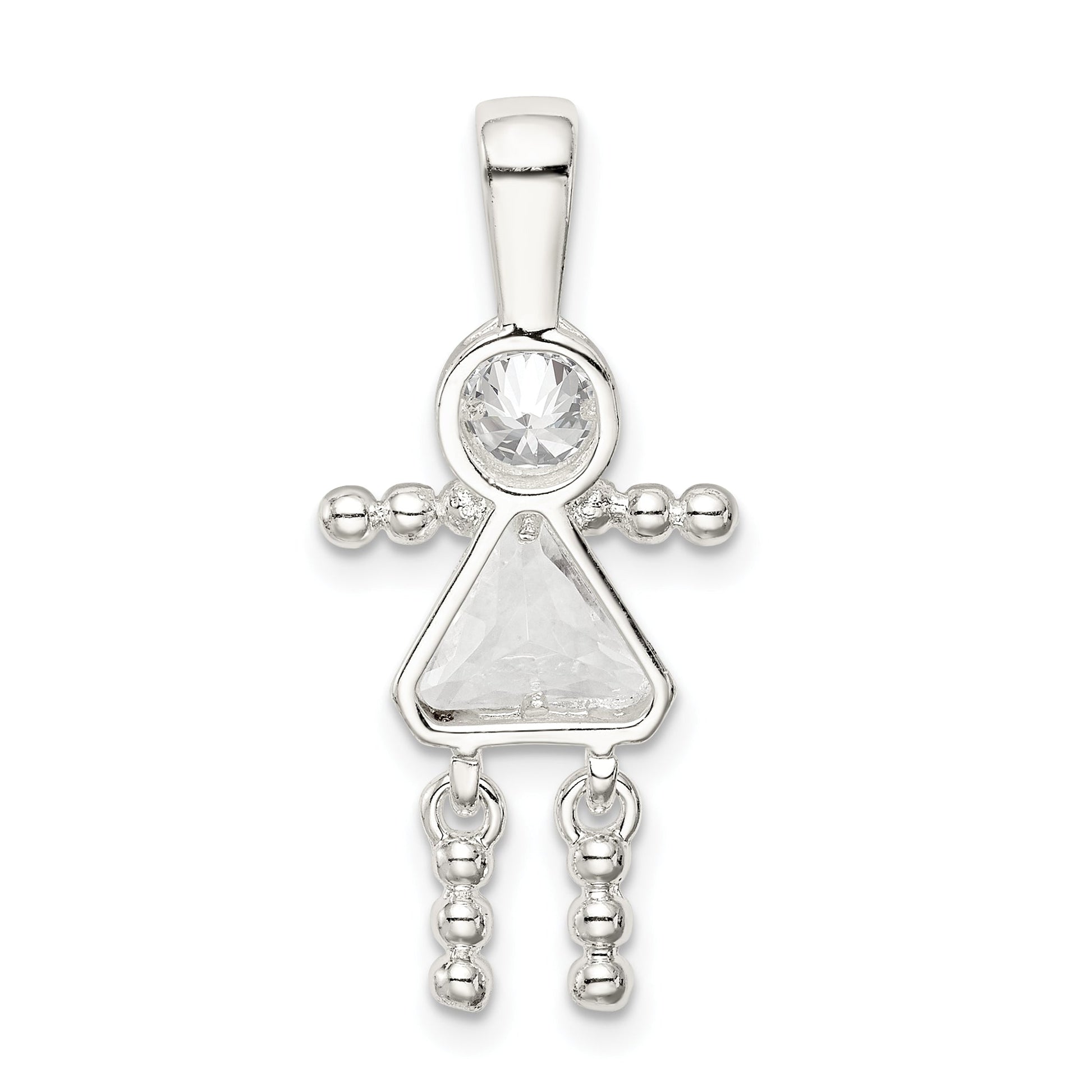 The Sterling Silver Rhodium-Plated Cz and April Glass Girl Pendant is a stunning piece that captivates with its charm. Crafted from 925 sterling silver, it features a dazzling synthetic clear stone that beautifully represents April's birthstone. With its rhodium plating, this pendant shines with a radiant silver tone, ensuring durability and long-lasting wear. Measuring 30 mm in length and 11 mm in width, this piece is both delicate and eye-catching. The girl's silhouette adds a playful touch, making it a perfect symbol of youth and innocence. Celebrate April birthdays with this Sterling Silver Rhodium-Plated Cz and April Glass Girl Pendant, a token of elegance.
