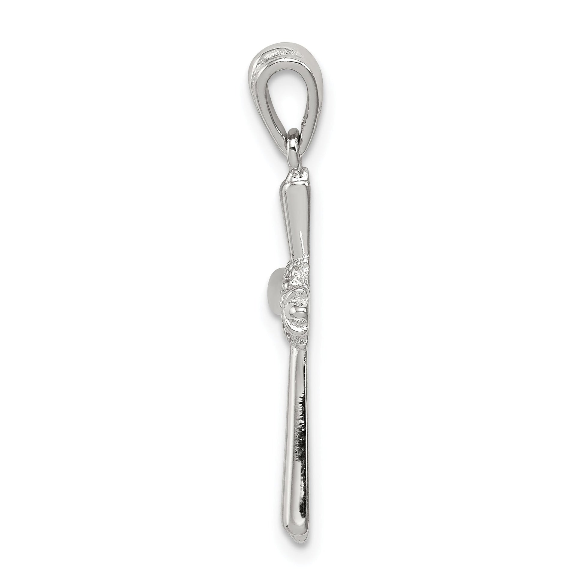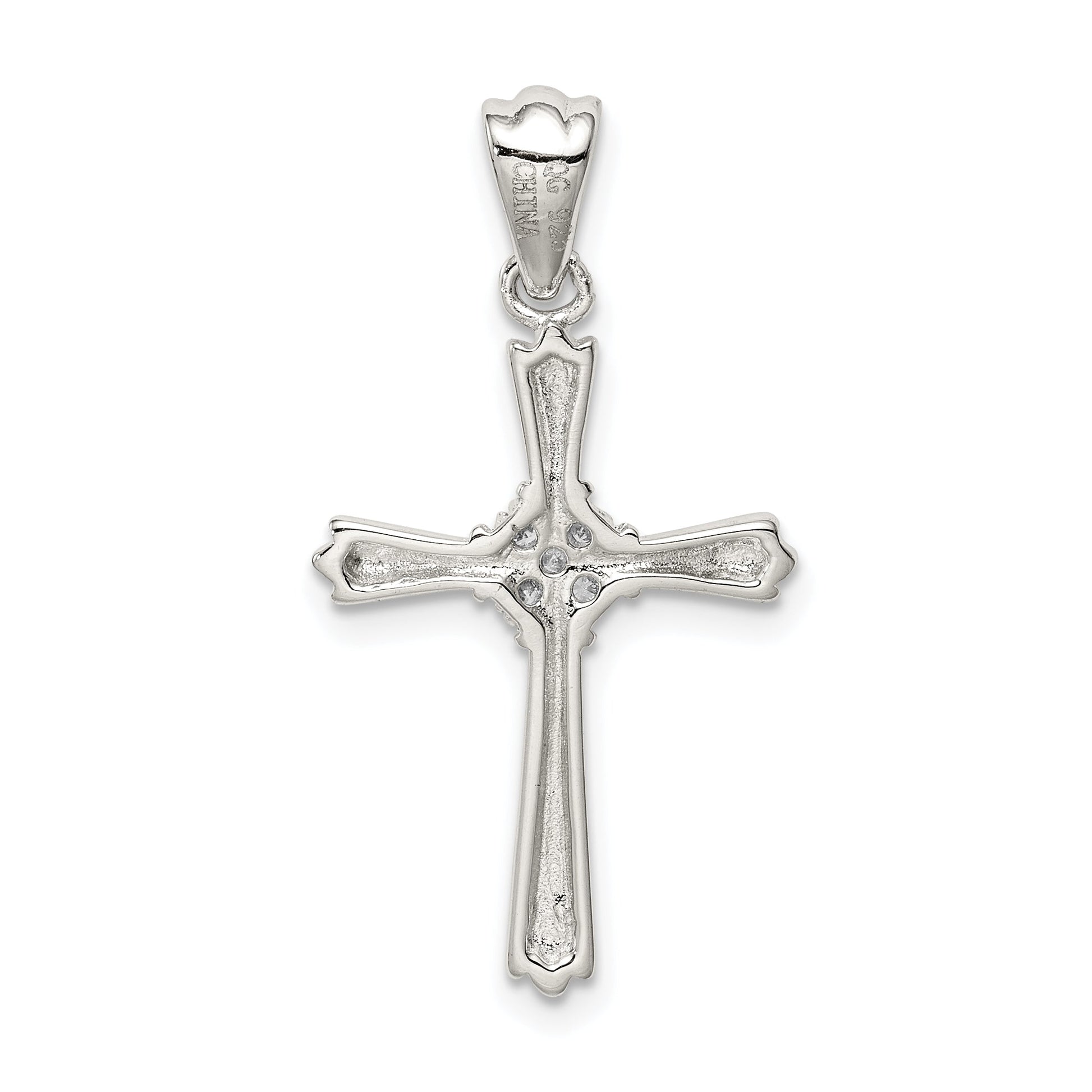 Discover the elegance of our Sterling Silver Rhodium-Plated CZ Cross Pendant. Crafted from 925 sterling silver, this pendant features a polished finish and dazzling cubic zirconia stones, adding a touch of sparkle to your style. The cross pendant measures 27 mm in length with a charm length of 21.88 mm and width of 14.9 mm, making it a subtle yet impactful accessory. The rhodium plating enhances its durability and shine, ensuring it remains a cherished piece for years. Make a statement with the Sterling Silver Rhodium-Plated CZ Cross Pendant today.
