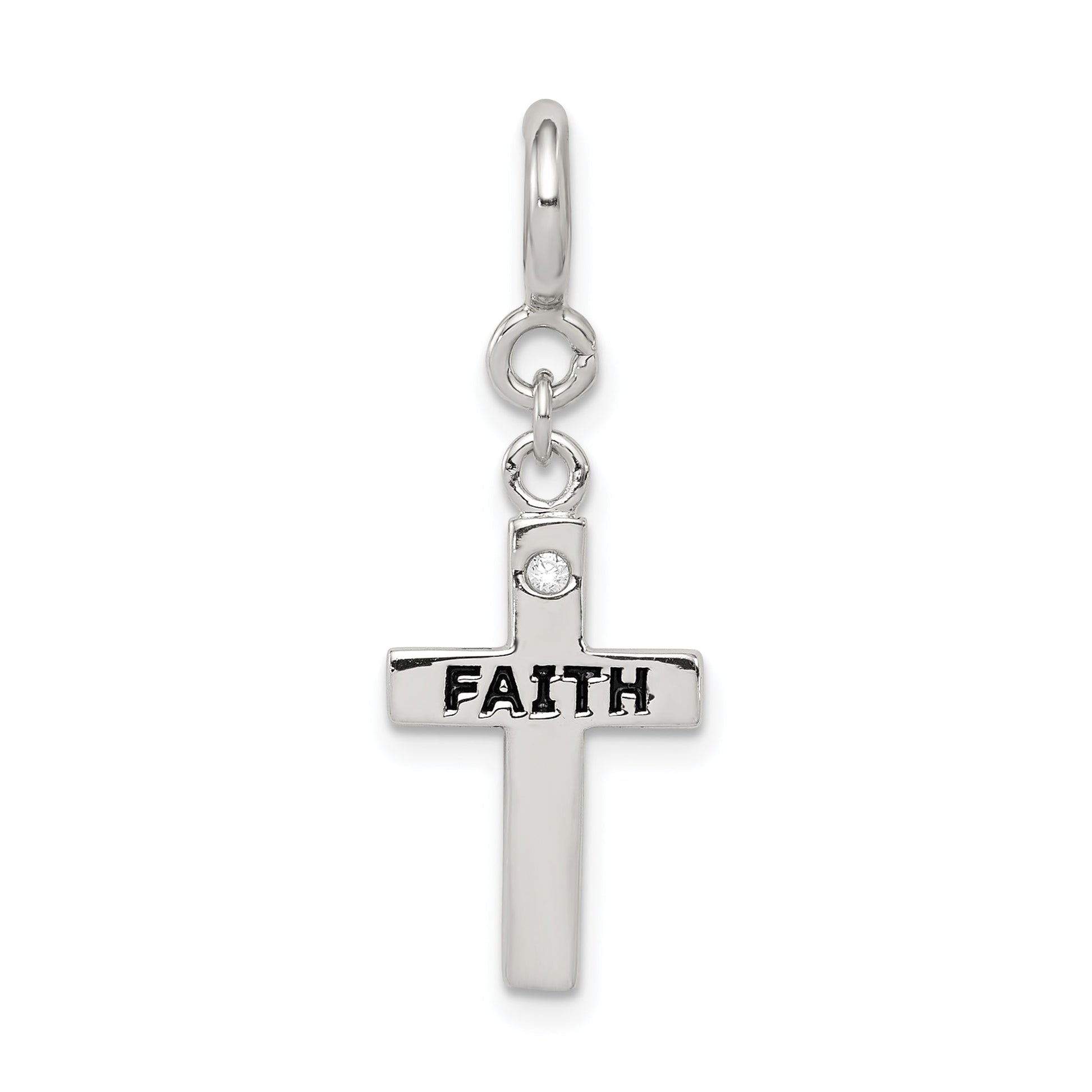The Sterling Silver Rhodium-Plated CZ Faith Cross Clip-On Charm is a symbol of elegance and devotion. Crafted from high-quality 925 sterling silver, this charm dazzles with clear cubic zirconia accents, offering a brilliant sparkle. Its rhodium plating enhances durability and resists tarnishing, ensuring the charm remains polished and striking. Measuring 30 mm in length with a clip-on design, it easily attaches to bracelets or necklaces. The charm's sleek 18.65 mm cross motif represents faith and hope, embodying your spiritual journey. With its timeless appeal, the Sterling Silver Rhodium-Plated CZ Faith Cross Clip-On Charm is a cherished addition to any jewelry collection.