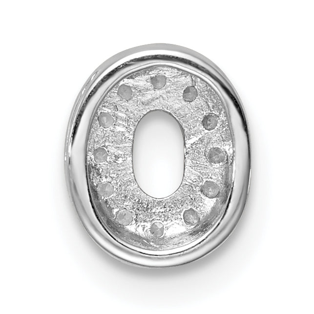 Add a touch of elegance to your jewelry collection with the Sterling Silver Rhodium-Plated CZ Letter O Initial Slide Charm. This charm features a stunning cubic zirconia stone, expertly crafted to mimic the brilliance of natural gemstones. Made from 925 sterling silver and enhanced with a sleek rhodium plating, it promises long-lasting shine and wearability. The charming letter O design serves as a stylish personal initial or commemorative symbol. Perfect for any necklace or bracelet, this charm is a versatile addition to your jewelry box. The Sterling Silver Rhodium-Plated CZ Letter O Initial Slide Charm is a must-have for those looking to add a personalized touch.