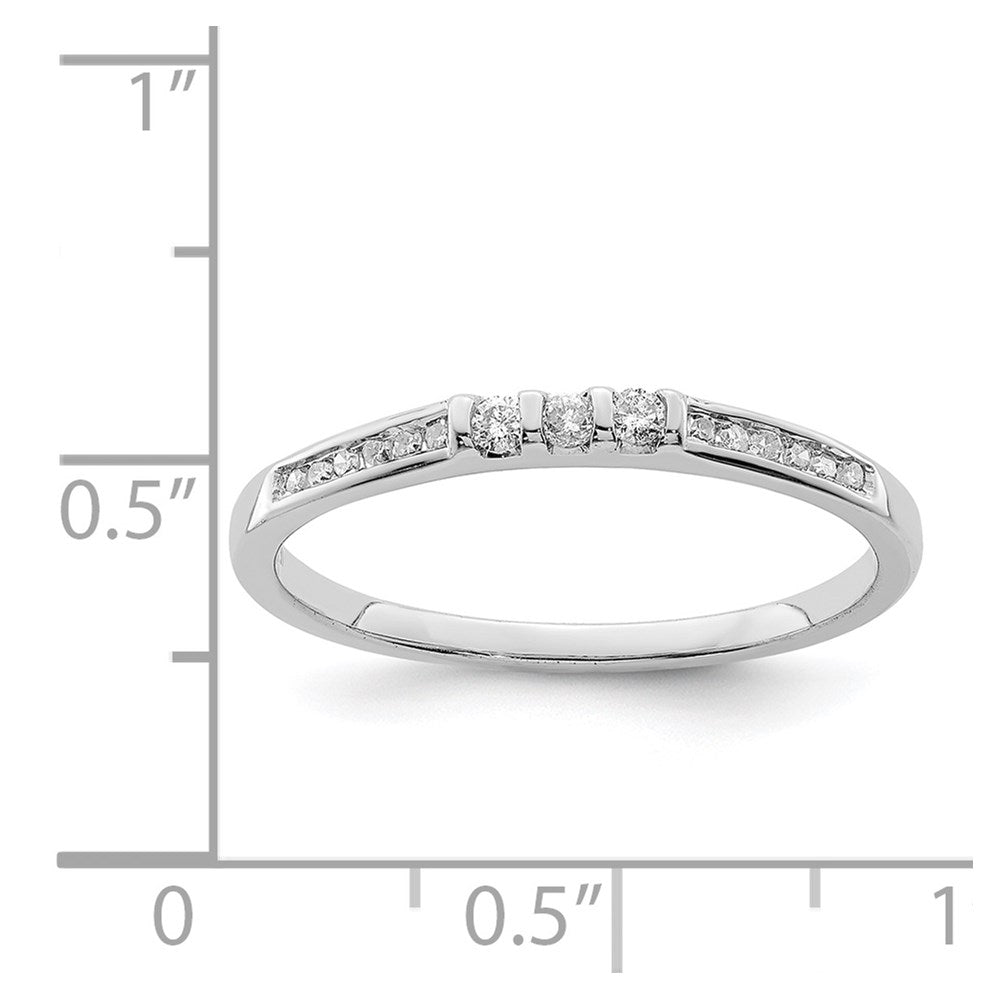 The Sterling Silver Rhodium Plated Diamond Ring stands out for its sleek style and sparkle. Crafted from 925 sterling silver, it features a shiny finish that adds a touch of elegance. This ring showcases 15 real white diamonds, with three larger and 12 smaller stones, all set in round shapes. The rhodium plating gives it a bright silver tone that resists tarnish, making it perfect for daily wear. With a narrow band of just 2 mm, it offers a refined look that fits comfortably. The Sterling Silver Rhodium Plated Diamond Ring combines fine craftsmanship with natural stones for a jewelry piece that truly shines.