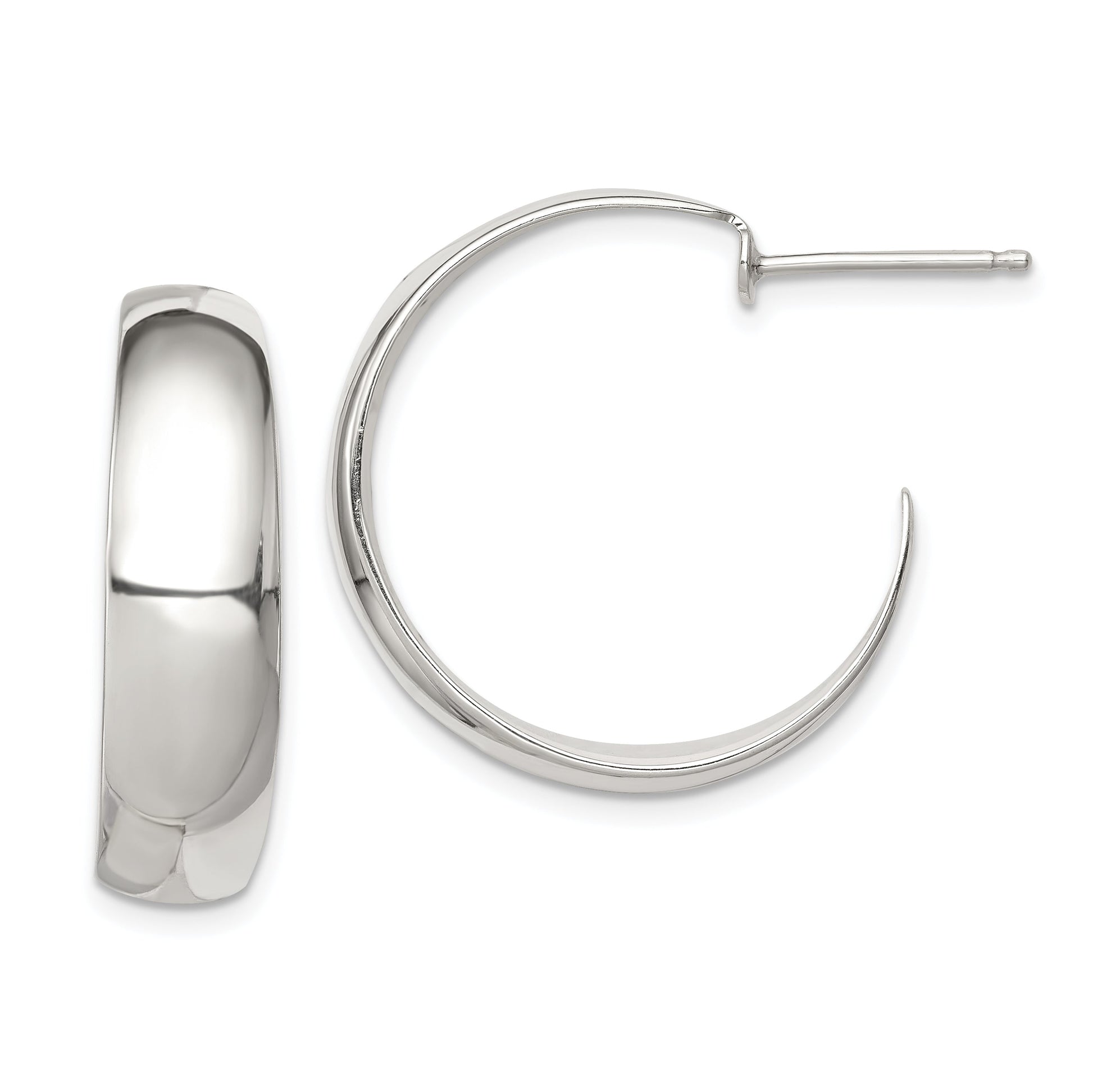 Discover the allure of the Sterling Silver Rhodium-Plated Fancy J-Hoop Post Earrings. Crafted with 925 sterling silver, these earrings feature a polished finish that exudes elegance. Measuring 23 mm in both length and width, these solid cast pieces offer a luxurious feel and a gleaming white hue. The post and push-back closure ensures security, while the unique J-hoop design adds a modern twist to your style. Perfect for any occasion, the Sterling Silver Rhodium-Plated Fancy J-Hoop Post Earrings are the ideal accessory to elevate any outfit with a touch of sophistication.