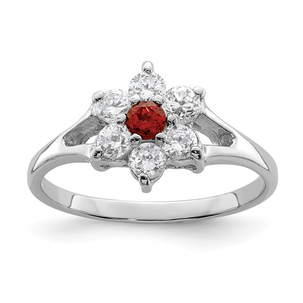 Sterling Silver Rhodium-plated Garnet u0026 CZ Ring