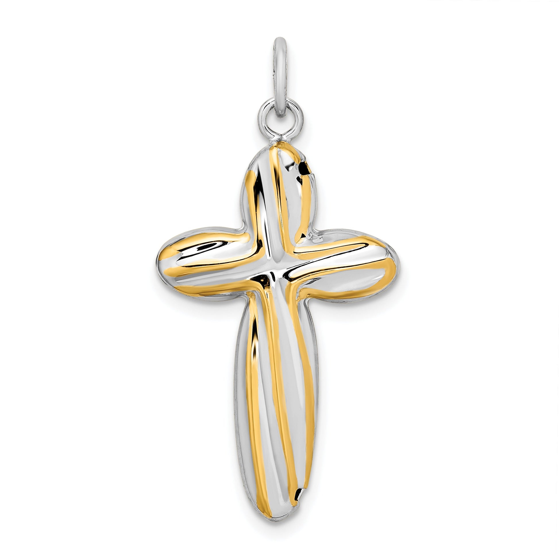 The Sterling Silver Rhodium-Plated & Gold-Tone Twist Cross Reversible Pendant offers elegance and versatility in one stunning piece. Crafted from solid 925 sterling silver, this pendant features a polished finish that catches the light beautifully. One side showcases a classic silver-toned cross, while the reverse side reveals a stylish twist of rhodium and gold tones. This unique design provides two looks in one pendant. Perfect for any occasion, the pendant boasts a charm length of 30.35 mm and a width of 19.38 mm, making it an ideal statement piece. Enhance your collection with the Sterling Silver Rhodium-Plated & Gold-Tone Twist Cross Reversible Pendant.