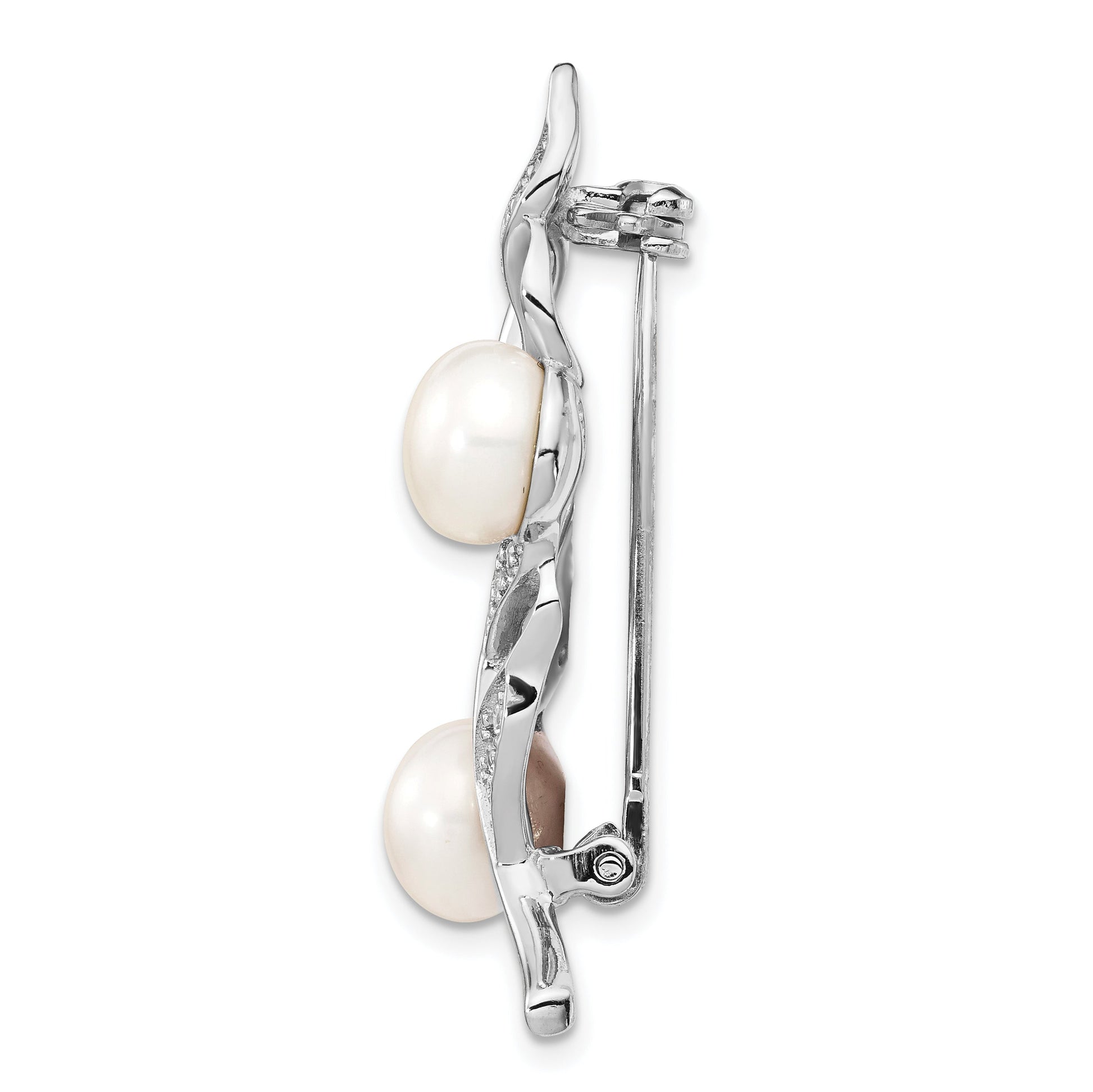 The Sterling Silver Rhodium-Plated Leaf Pin Brooch is an elegant addition to any jewelry collection. This exquisite piece features a 7-8mm white button freshwater cultured pearl, accentuated by dazzling cubic zirconia stones for a stunning finish. Crafted from 925 sterling silver and adorned with rhodium plating, this pin offers a polished look and ensures longevity. The semi-solid brooch spans 36.9 mm in length and 13 mm in width. Designed for women, it embodies sophistication and charm. Elevate your style with the Sterling Silver Rhodium-Plated Leaf Pin Brooch, perfect for any occasion.