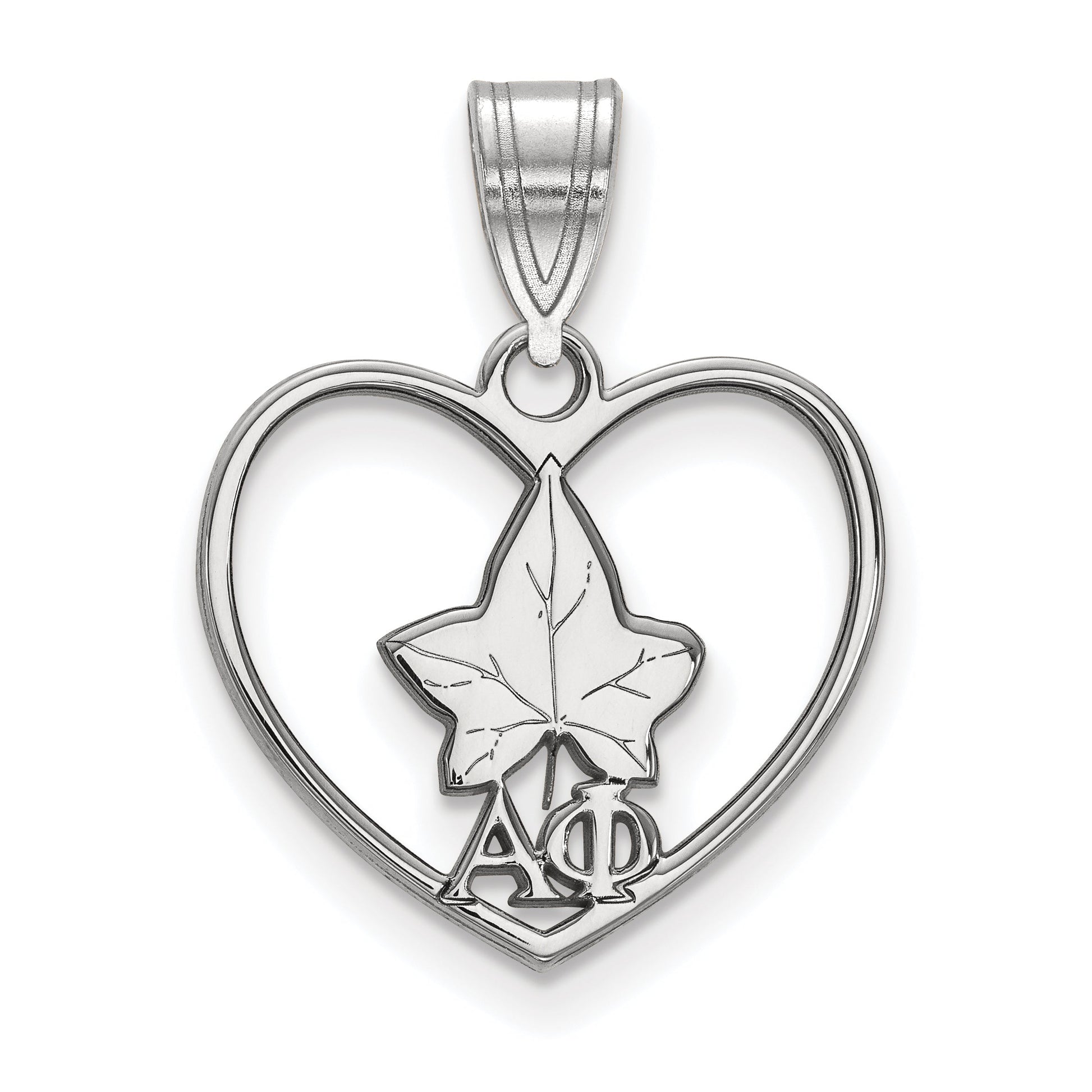 The Sterling Silver Rhodium-Plated Logoart Alpha Phi Sorority Symbol Heart Pendant is a stylish piece that shows your pride clearly. Crafted from high-quality sterling silver and finished with a bright rhodium coating, this pendant has a polished look that lasts. Measuring 21 mm in length, it features the Alpha Phi emblem in a sleek, laser-cut design. The pendant’s charm measures 15 by 17 mm, making it a medium-sized accessory that’s perfect to wear daily. With a sturdy bail and a silver-tone finish, the Alpha Phi Heart Pendant adds a touch of class and school spirit to any outfit.