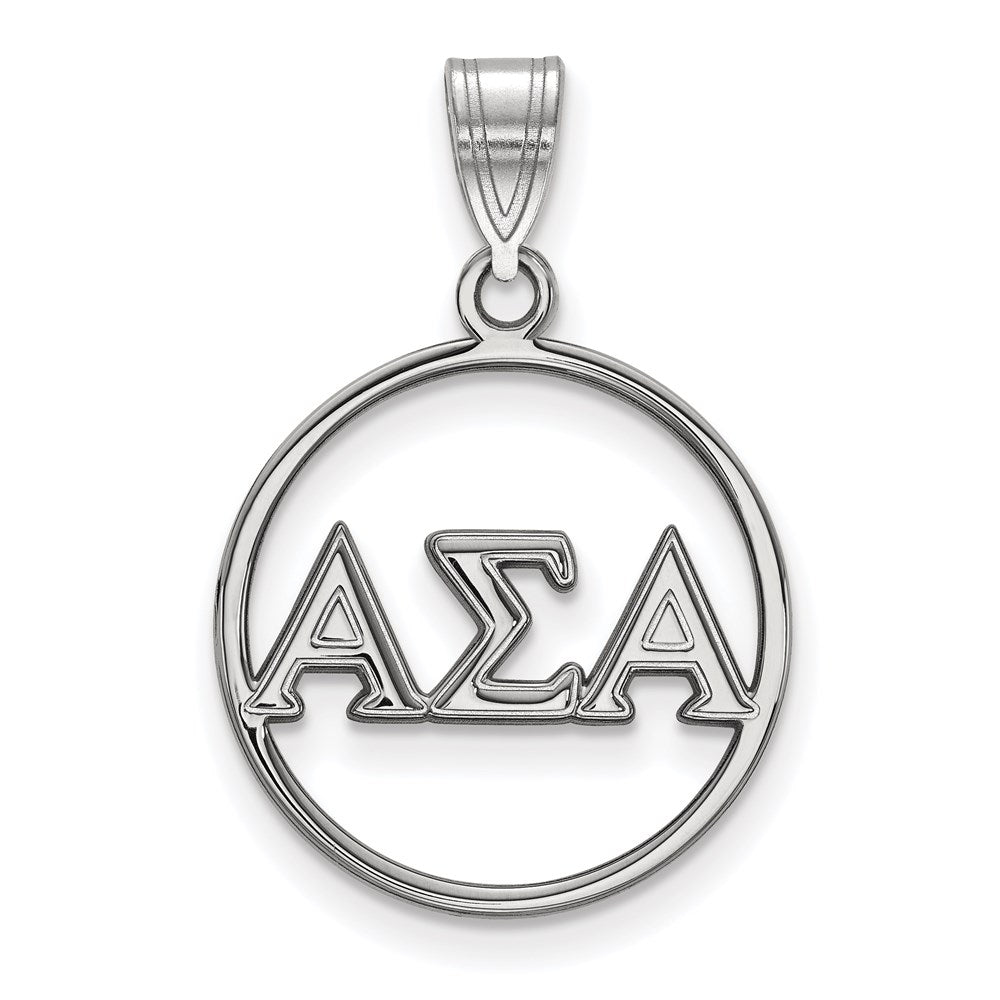 Show off your pride with the Logoart Alpha Sigma Sorority Greek Letters Small Circle Pendant. Made from genuine sterling silver, this stylish piece features a polished finish and a sleek rhodium plating that resists tarnish. The pendant measures 25 mm in length and is laser-cut for a precise look. Its small size makes it perfect for everyday wear. The pendant showcases the Alpha Sigma Alpha Greek letters and is licensed by LogoArt LLC. A 6 mm bail allows easy attachment to your favorite chain. Celebrate sisterhood with this eye-catching jewelry piece.