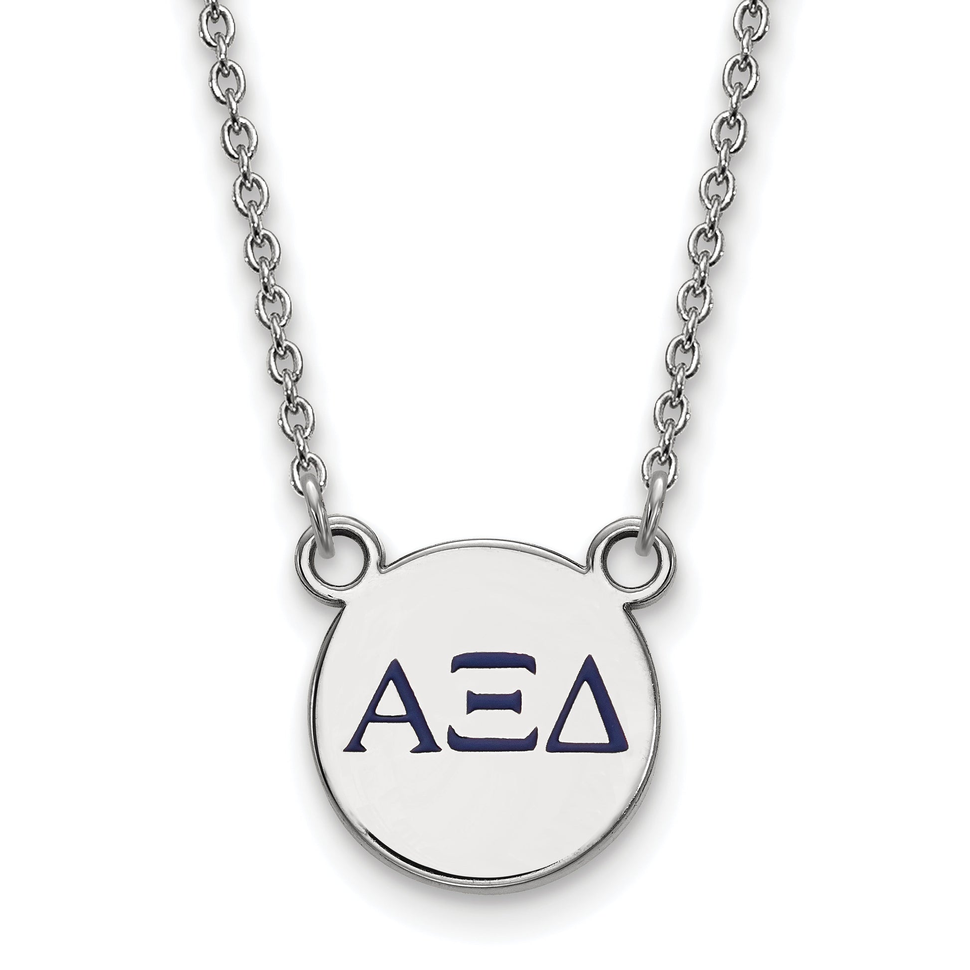 Show off your sisterhood with the Sterling Silver Rhodium-Plated Logoart Alpha Xi Delta Greek Letters Pendant. This small, stylish piece features vibrant blue enamel accents that pop against the shiny silver finish. Tough and well-made, it’s designed with laser-cut precision and a sturdy lobster clasp for lasting wear. The 18-inch cable chain offers a comfortable fit that sits just right. Crafted from high-quality sterling silver, this extra small pendant captures your pride in a sleek and elegant way. Perfect for daily wear, the Sterling Silver Rhodium-Plated Logoart Alpha Xi Delta Greek Letters Pendant adds a fresh touch of class to any outfit.