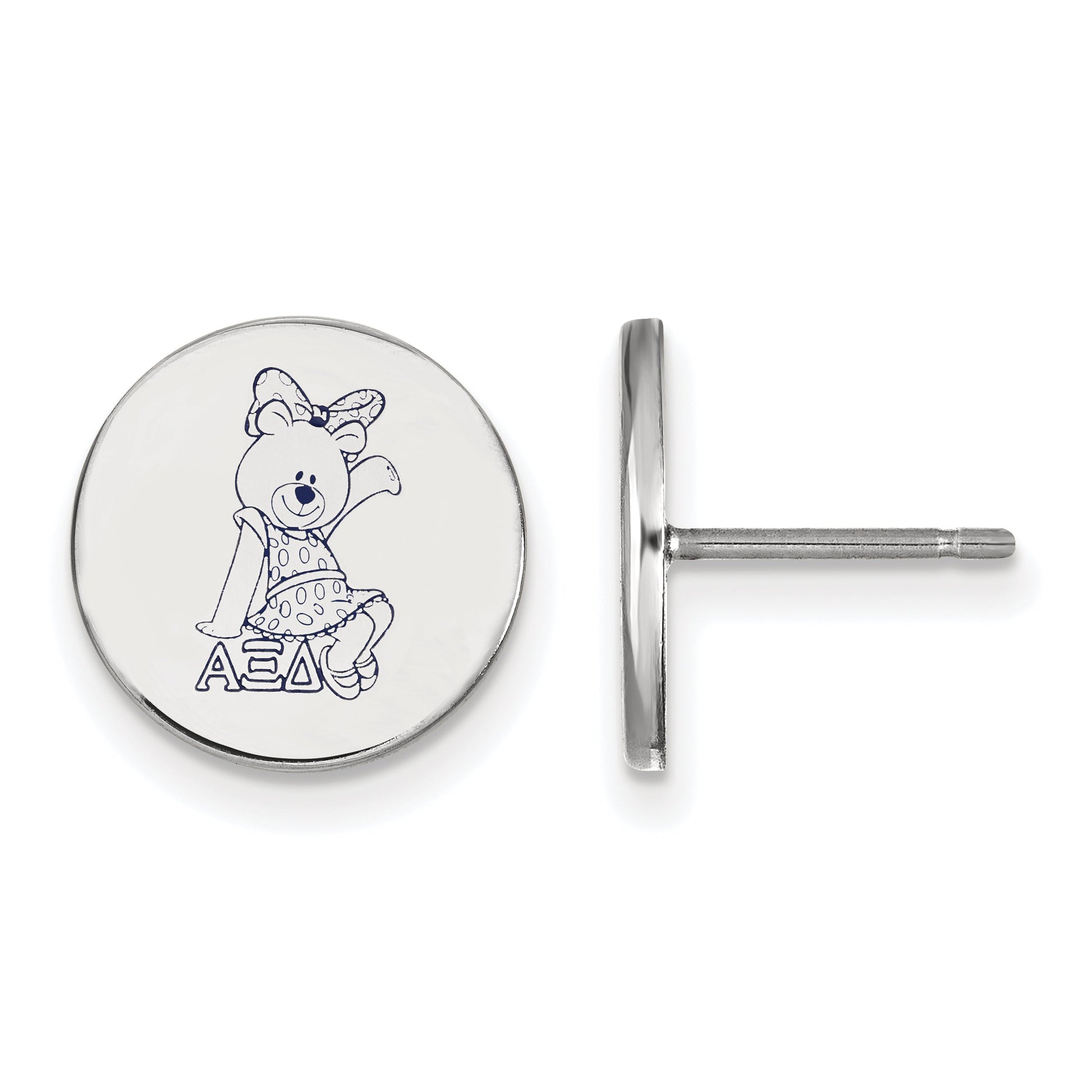 Celebrate your sisterhood with the Sterling Silver Rhodium-Plated Logoart Alpha Xi Delta Sorority Symbol Color Enamel Post Earrings. These stylish earrings showcase the iconic Alpha Xi Delta badge in vibrant blue enamel, set on polished sterling silver with a shiny rhodium finish. Small and lightweight at 12 mm wide, they fit comfortably and add a subtle pop of color to any look. The post and push-back closure keep them secure. Crafted with laser-cut precision, these earrings perfectly blend quality and style. Show your pride with the elegant Sterling Silver Rhodium-Plated Logoart Alpha Xi Delta earrings—ideal for everyday wear or special moments.