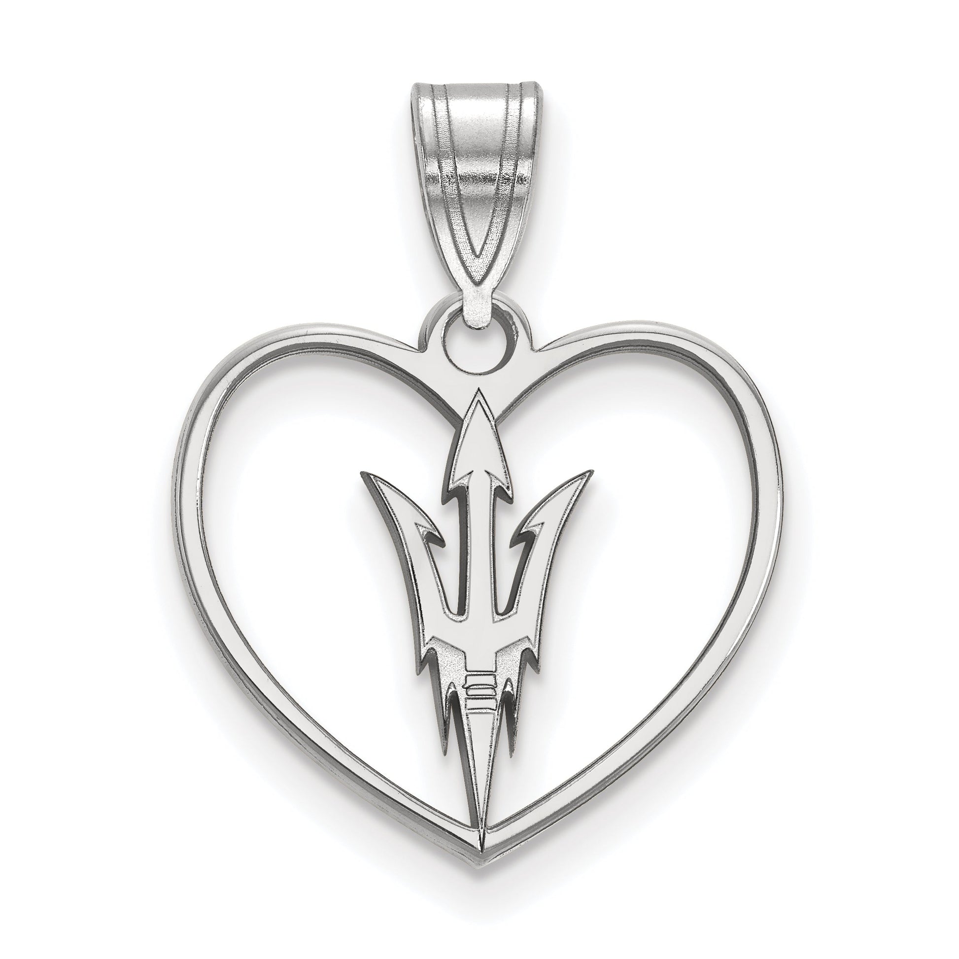 Show your school spirit with the Logoart Arizona State University Pitchfork Heart Pendant, a sleek piece of jewelry that celebrates your pride. Made from high-quality sterling silver, it shines with a polished finish that catches the eye. The pendant features the iconic pitchfork and heart design, symbolizing the Sun Devils’ strength and passion. Measuring 21 mm in length, it’s perfect for everyday wear or special occasions. The rhodium plating adds extra shine and durability. Crafted with laser precision and licensed by NCAA, the Logoart Arizona State University Pitchfork Heart Pendant is a stylish way to show off your school pride.