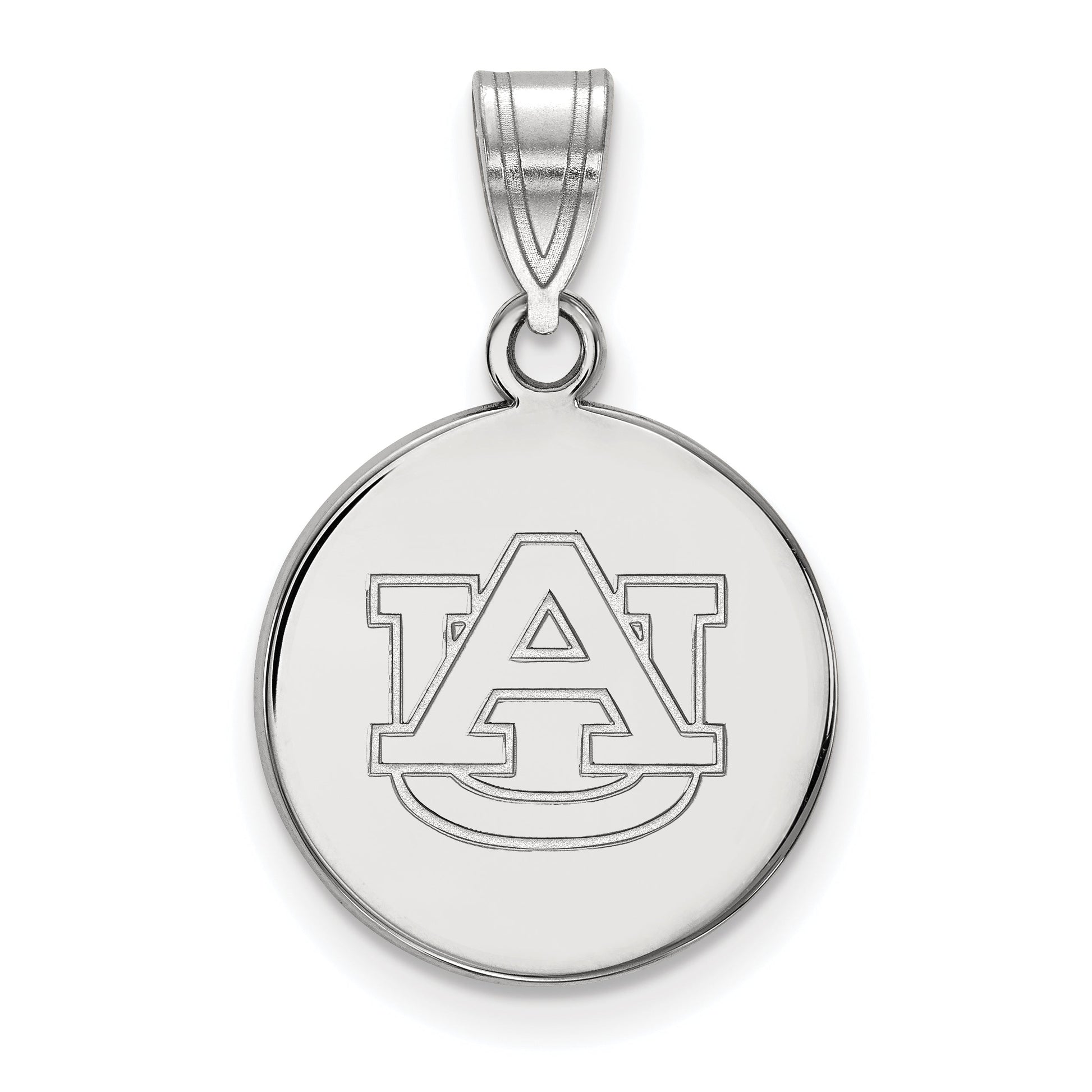 Show your pride with the Sterling Silver Rhodium-Plated LogoArt Auburn University Medium Disc Pendant. This stylish piece features a sleek 22 mm polished disc made from high-quality 925 sterling silver, giving it a bright, durable shine. The carefully laser-cut Auburn University logo is beautifully etched on the charm, making it an eye-catching accessory. With a secure 4 mm bail, you can easily add it to your favorite chain or bracelet. Perfect for fans who want to wear their school spirit every day, the Auburn University Medium Disc Pendant combines tradition with modern style in one bold, lightweight design.