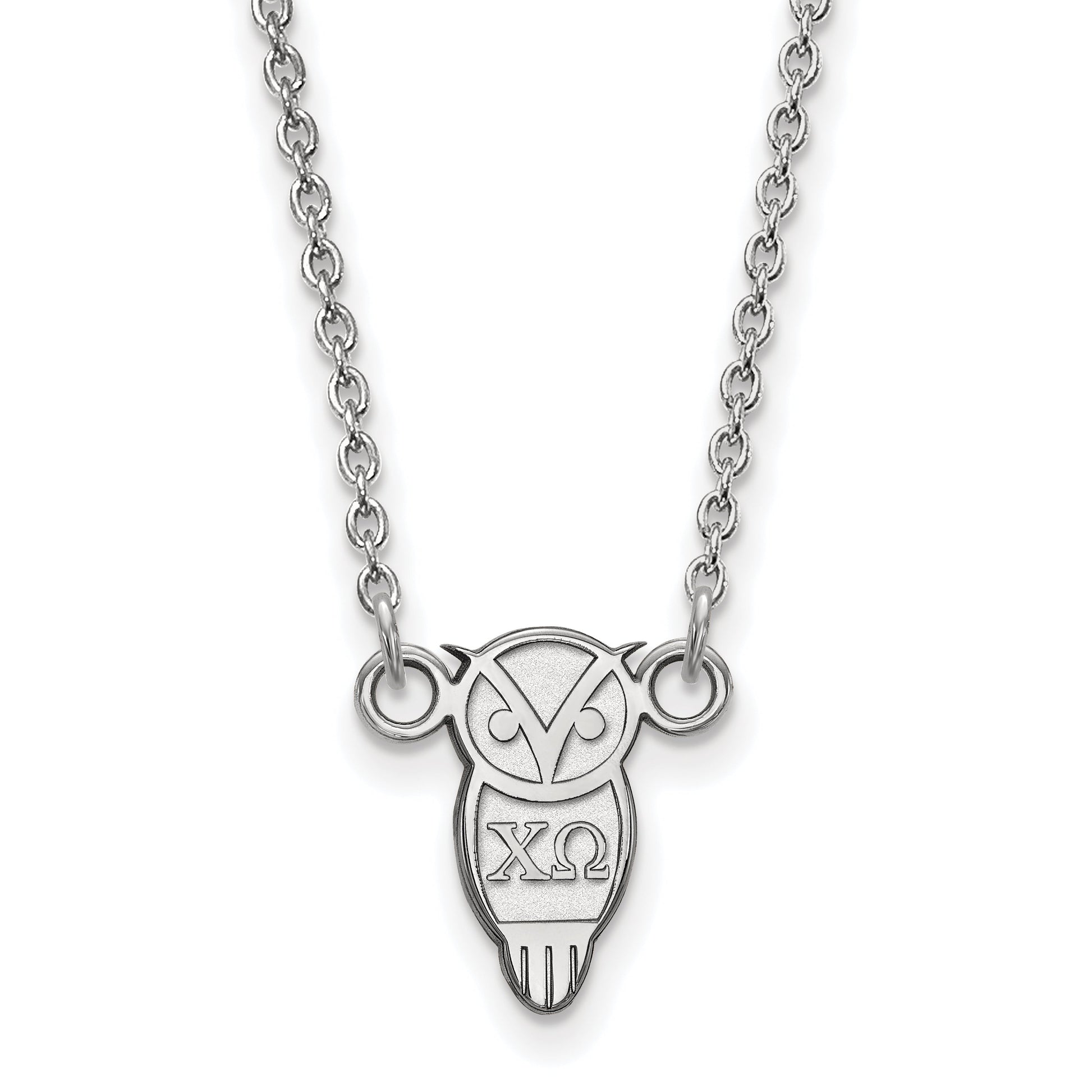Show off your sisterhood with the LogoArt Chi Omega Sorority Symbol Necklace. Crafted from pure sterling silver and coated with rhodium, this necklace shines bright and resists tarnish. The extra small pendant, measuring 12 by 7 mm, features the iconic Chi Omega logo and hangs on a sleek 18-inch cable chain. Its polished finish adds a sophisticated glow, making it perfect for daily wear or special events. With a sturdy lobster clasp, this necklace stays secure all day. LogoArt Chi Omega Necklace blends style with pride, a must-have for any sorority sister.