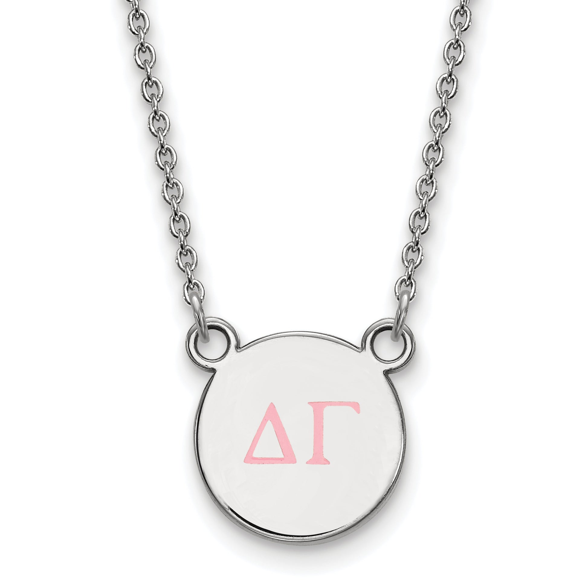 Show off your pride with the Sterling Silver Rhodium-Plated Logoart Delta Gamma Sorority Greek Letters Pendant. This small, eye-catching charm measures 12 mm and features vibrant blue enamel accents that pop against its polished sterling silver base. Crafted with laser precision, the pendant hangs from a sleek 18-inch cable chain with a sturdy lobster clasp. Its lightweight design makes it perfect for daily wear and shows your love for Delta Gamma. The high-quality rhodium finish adds extra shine and durability. With the Sterling Silver Rhodium-Plated Logoart Delta Gamma Necklace, you’ll carry your sorority spirit in style wherever you go.