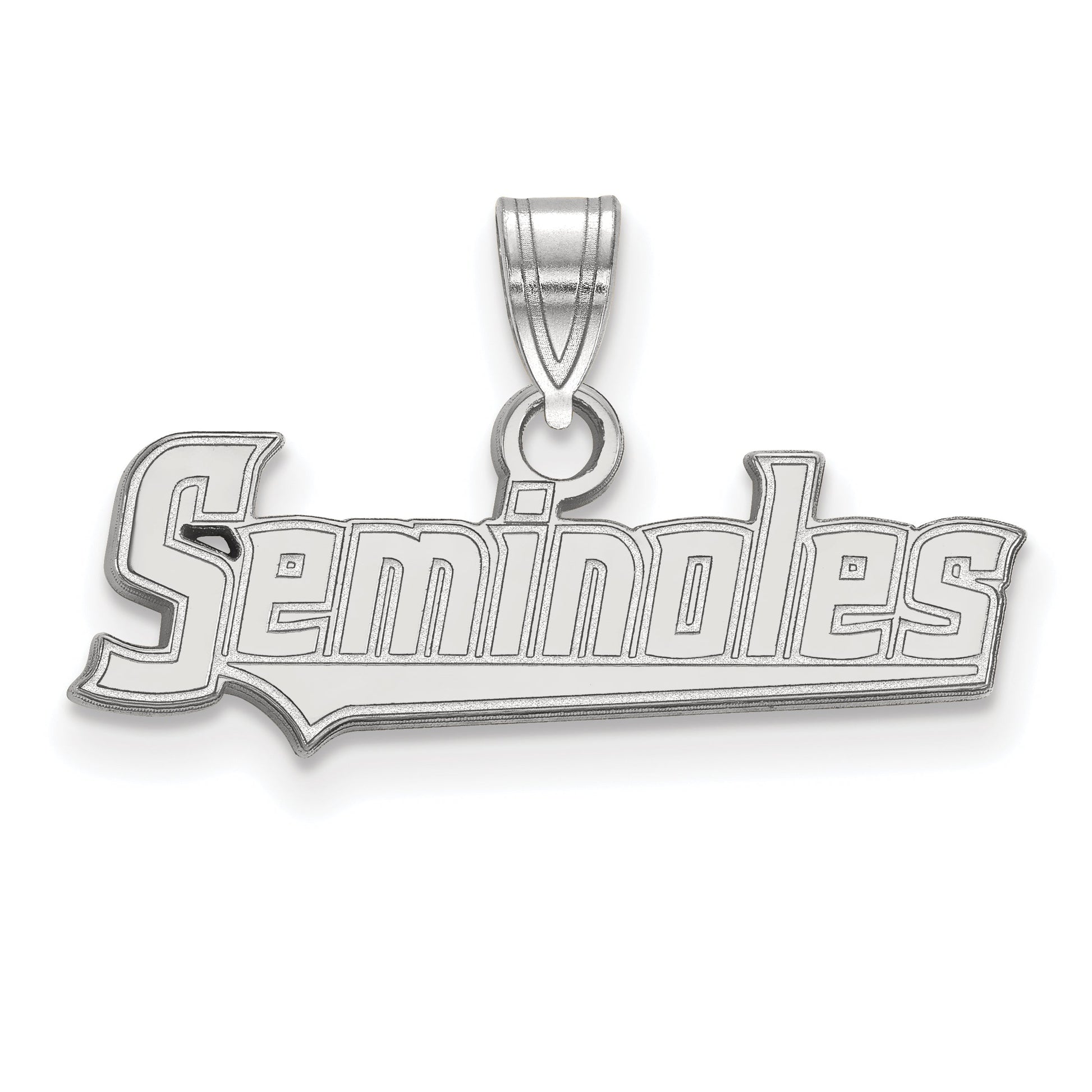 Show off your school pride with the Sterling Silver Rhodium-Plated LogoArt Florida State University Seminoles Script Small Pendant. Crafted from pure 925 sterling silver, this pendant is polished to a bright shine and coated with durable rhodium. Its small size, measuring just 13 mm, makes it perfect for daily wear. The design features the iconic Seminoles logo, laser cut for precision and detail. A sleek bail makes it easy to add to your favorite chain. Celebrate Florida State with this stylish and genuine piece of jewelry that highlights your school spirit.