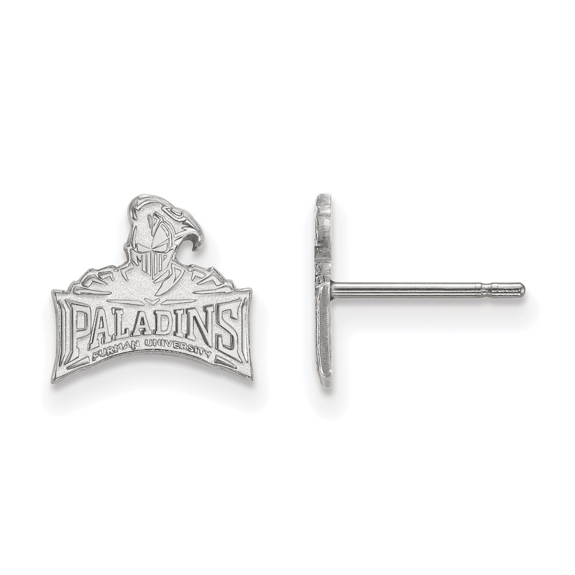 Show off your school pride with the Sterling Silver Rhodium-Plated Logoart Furman University Paladins Extra Small Post Earrings. Crafted from high-quality 925 sterling silver, these earrings boast a sleek, polished finish that shines bright. Measuring 9 mm in length and 10 mm in width, they fit comfortably and look subtle yet stylish. The NCAA-licensed Furman Paladins logo is laser-cut for sharp detail, making these earrings perfect for everyday wear or game day. The post and push-back closure ensure a secure fit. Elevate your jewelry game with these genuine Furman University earrings—an ideal choice for any fan.
