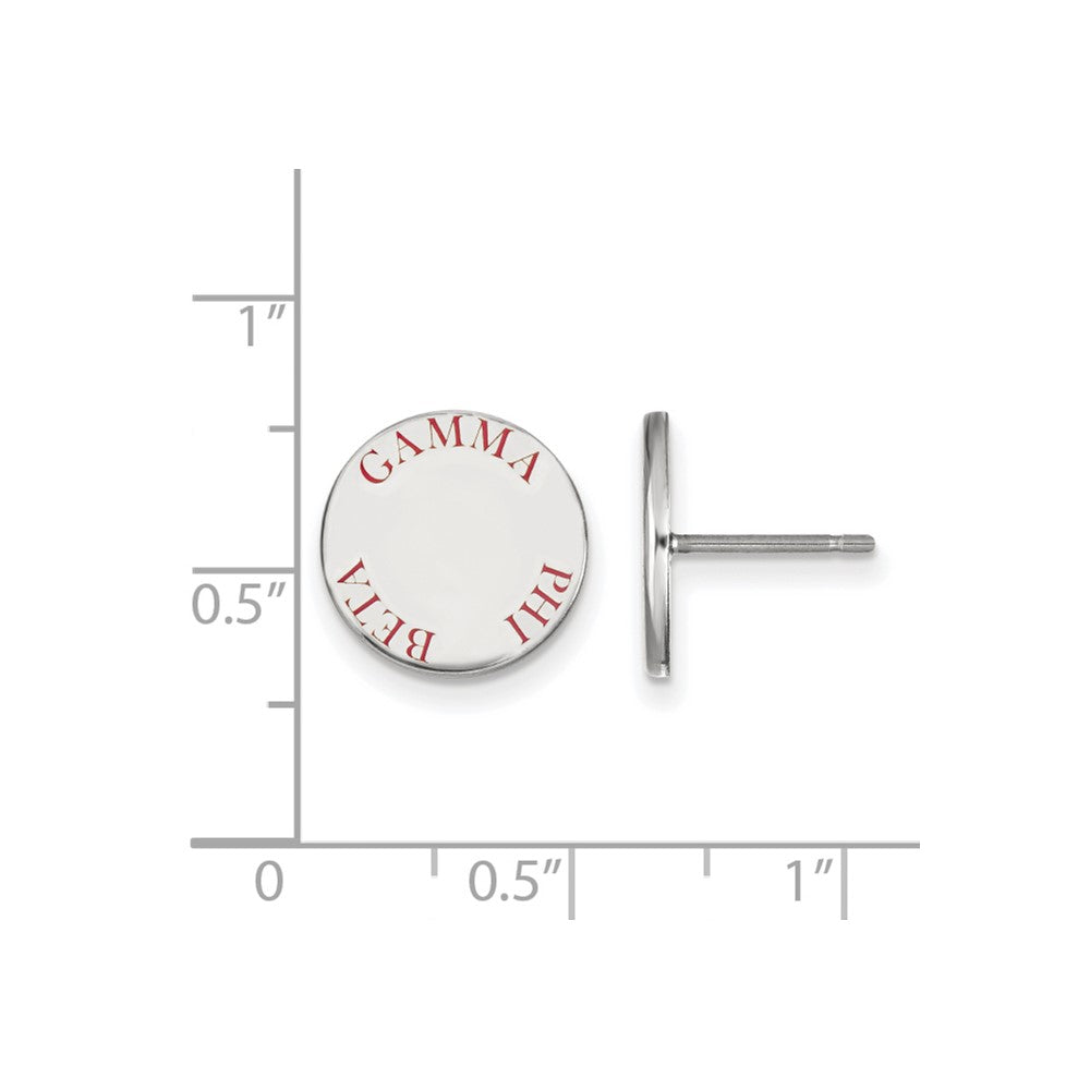 Introducing the Sterling Silver Rhodium-Plated Logoart Gamma Phi Beta Sorority Text Enamel Post Earrings. These stylish earrings feature a polished 925 sterling silver base, highlighted with vibrant hot pink and dark brown enamel accents. Measuring 12mm, they are lightweight and perfect for daily wear. The post and push-back closure ensures a secure fit. Designed with laser-cut precision, these earrings showcase the iconic Gamma Phi Beta logo in a sleek silver tone. Crafted for women, the Logoart Gamma Phi Beta earrings add a subtle yet bold touch of pride. Perfect for everyday or special occasions, they bring a touch of elegance to any outfit.