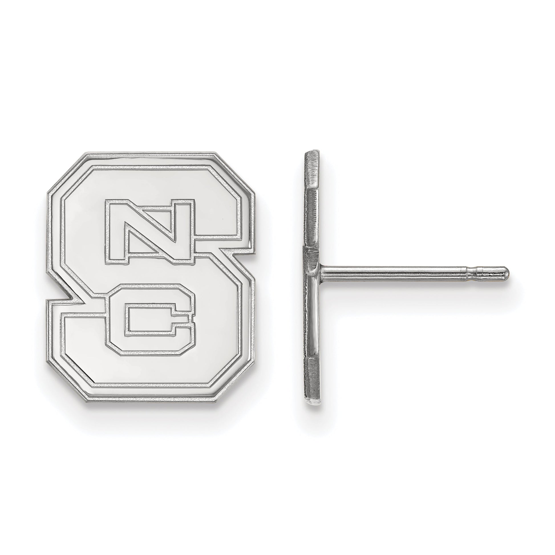 Show off your pride with the Sterling Silver Rhodium-Plated Logoart North Carolina State University N-C-S Small Post Earrings. Crafted from bright sterling silver, these lightweight earrings measure 12 mm long and 10 mm wide. They feature a crisp laser-cut NC State logo, finished with a durable rhodium plating for added shine. The simple post and push-back design make them comfy for all-day wear. Perfect for fans and alumni, these earrings let you sport your school spirit in a subtle, stylish way. Celebrate your favorite college with the Sterling Silver Rhodium-Plated Logoart North Carolina State University N-C-S Small Post Earrings.