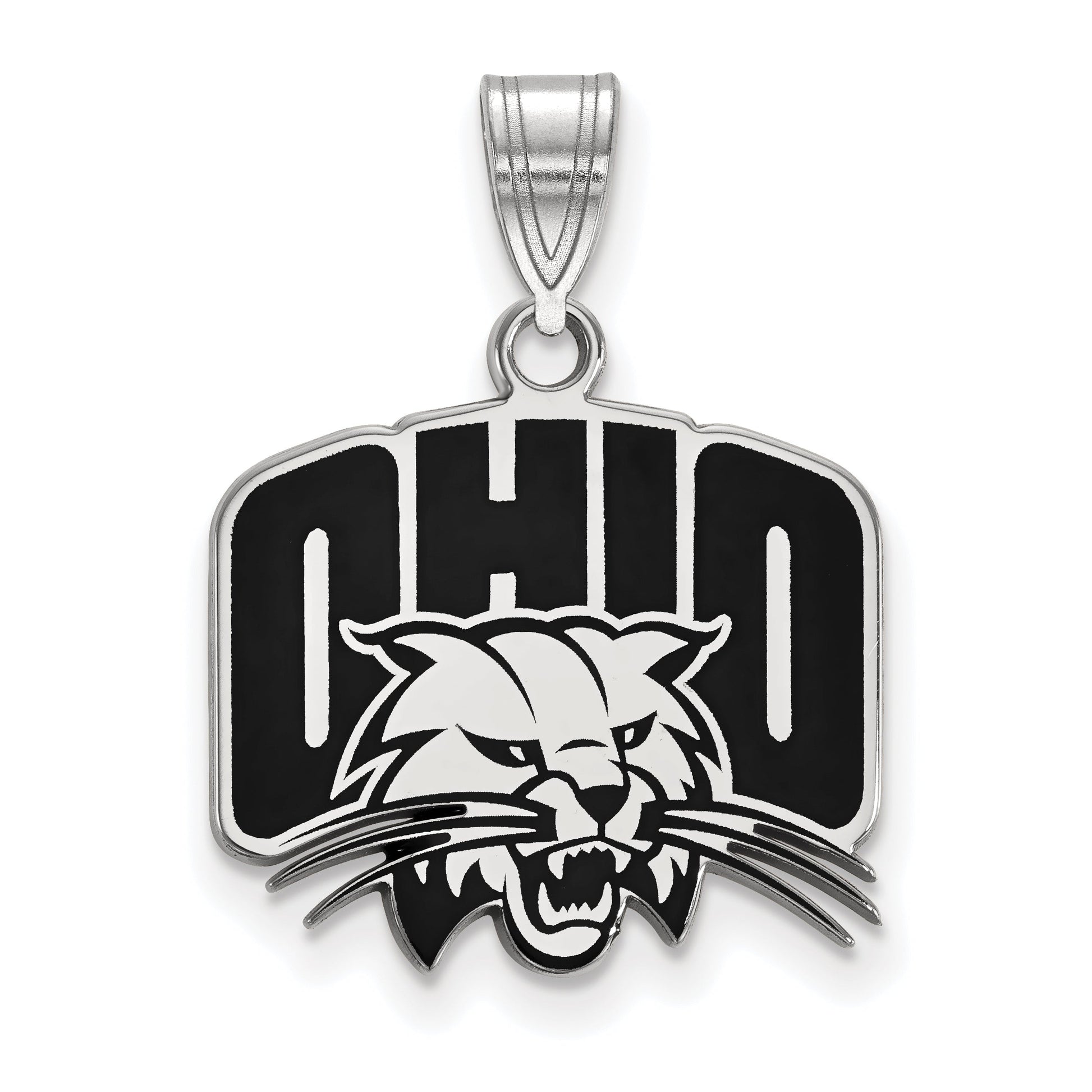 The Sterling Silver Rhodium-Plated Ohio University Medium Enameled Pendant is a stylish piece for fans and collectors alike. Crafted from pure sterling silver with a shiny rhodium finish, it showcases the iconic Ohio University logo in vibrant enamel. The 22 mm pendant features precise laser cut details, offering a sleek, polished look. Its medium size and unisex design make it versatile for daily wear. The adjustable bail allows for easy pairing with your favorite chain. Whether you’re showing school pride or adding a cool touch to your style, the Ohio University Medium Enameled Pendant by LogoArt stands out as a must-have accessory.