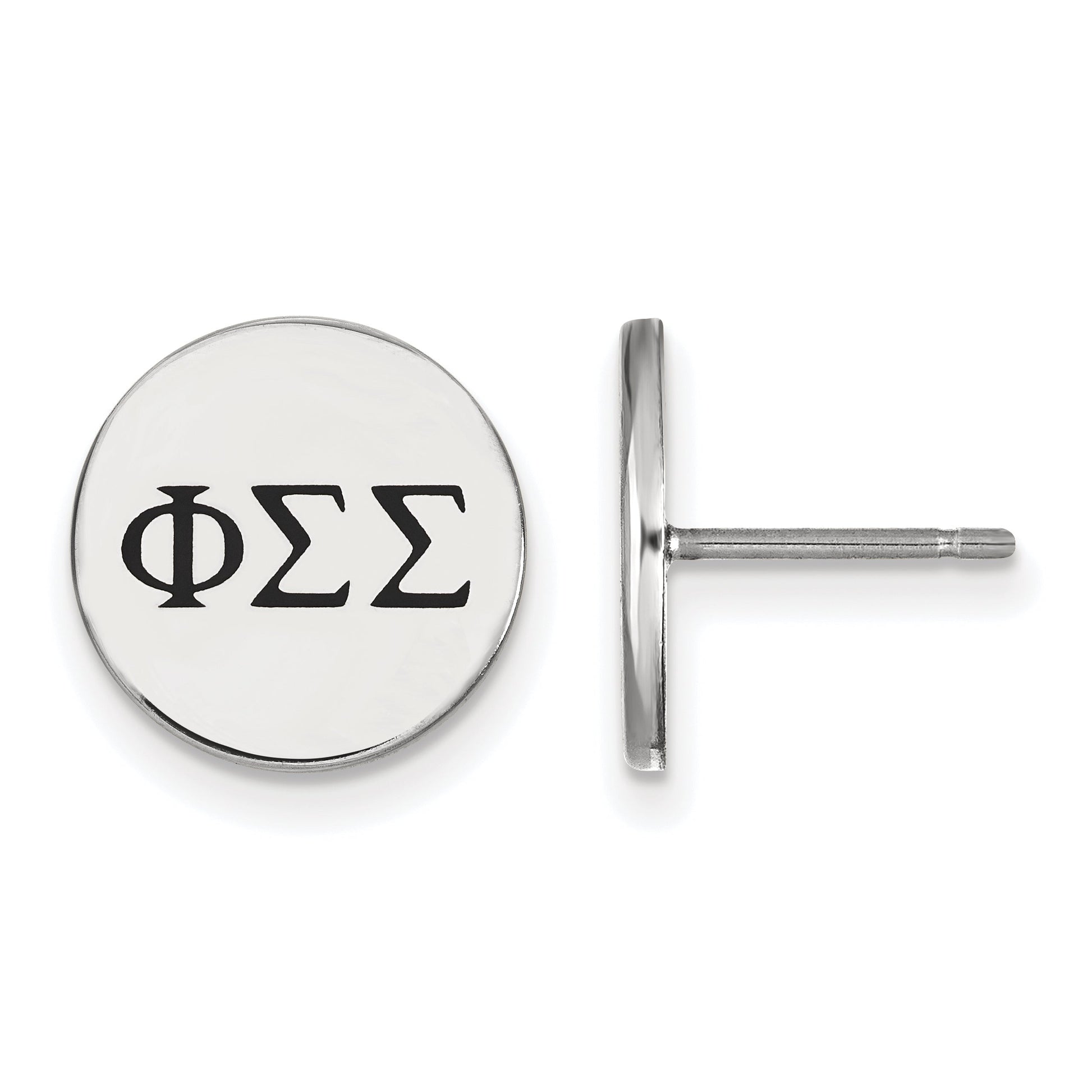 Show your sorority pride with the Sterling Silver Rhodium-Plated Logoart Phi Sigma Sigma Greek Letters Black Enamel Post Earrings. Crafted from genuine 925 sterling silver, these earrings are polished for a sleek shine and measure 12 mm wide. The black enamel accents highlight the iconic Phi Sigma Sigma logo, adding a bold touch. With a durable post and push-back closure, they stay secure and comfortable for daily wear. These small, stylish earrings combine quality and pride, making them perfect for any Phi Sigma Sigma member. The Sterling Silver Rhodium-Plated Logoart Phi Sigma Sigma Greek Letters Black Enamel Post Earrings are a great way to showcase your sorority spirit with style.