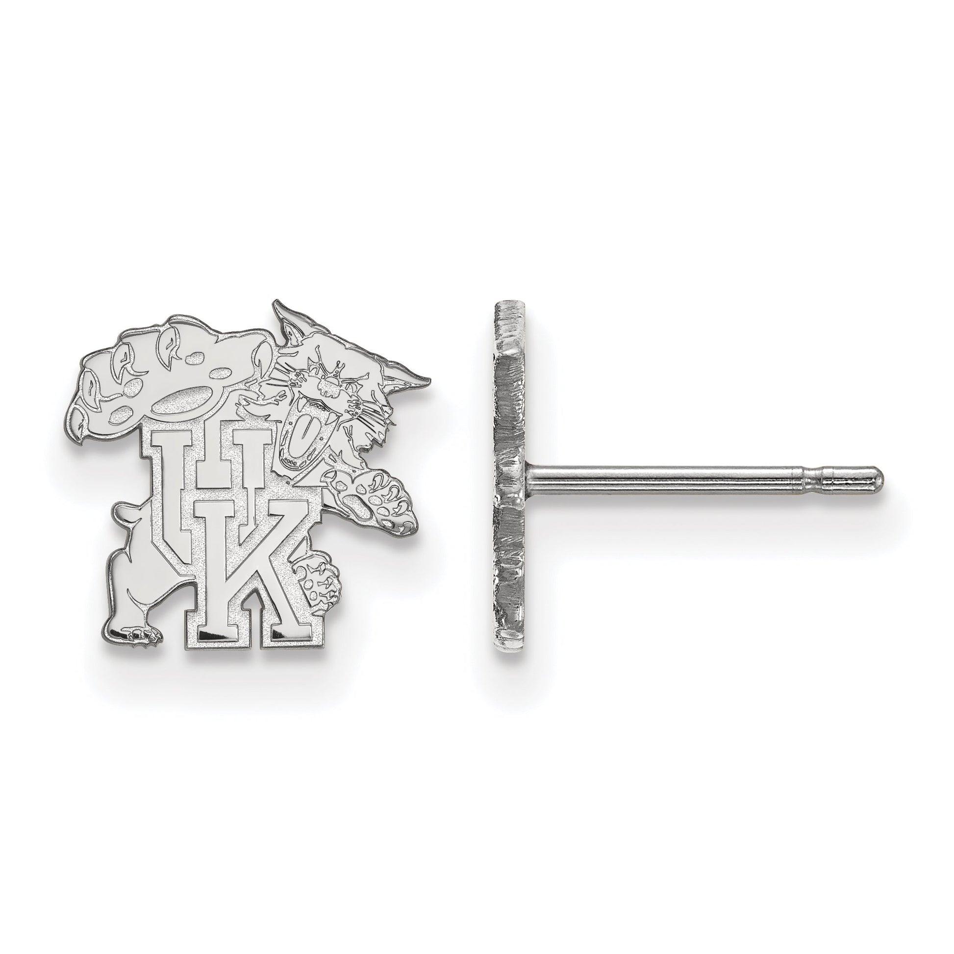 Show off your school pride with the Sterling Silver Rhodium-Plated Logoart University of Kentucky U-K Wildcat Extra Small Post Earrings. These earrings are made from high-quality sterling silver, giving them a polished look that lasts. The rhodium plating adds shine and helps prevent tarnish. At just 9 mm wide, they’re a perfect size for everyday wear, especially for women. These licensed NCAA earrings showcase the iconic Kentucky Wildcats logo. Their small, sleek design makes them a great gift or keepsake for any U-K fan. The Sterling Silver Logoart University of Kentucky U-K Wildcat earrings combine style with school spirit effortlessly.