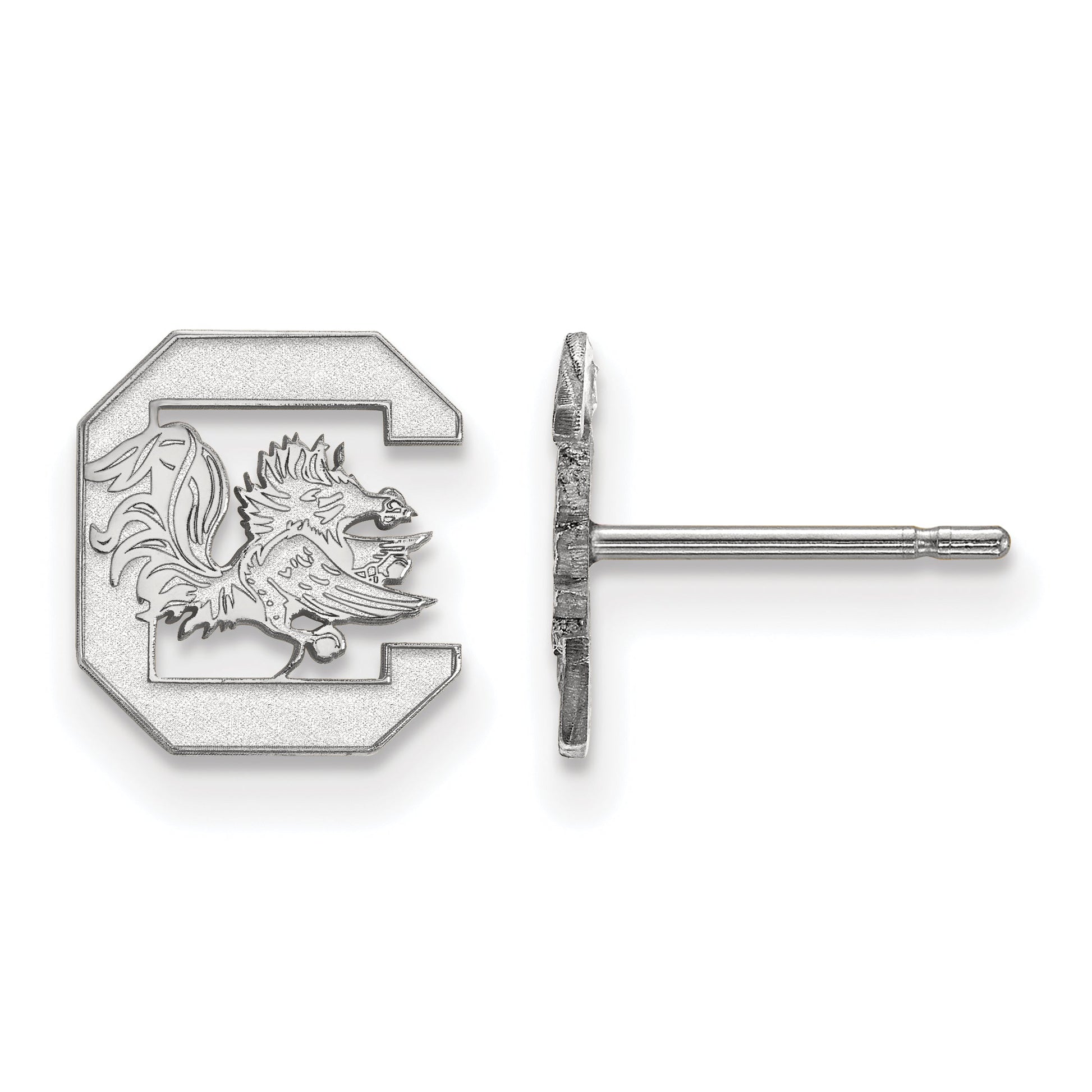 Show off your school spirit with the Sterling Silver Rhodium-Plated Logoart University of South Carolina Extra Small Post Earrings. Crafted from high-quality 925 sterling silver, these earrings shine with a polished finish and feature the historic Gamecocks logo. At just 9 mm long and 8 mm wide, they sit comfortably on your ear, perfect for daily wear. The silver tone adds a sleek look, while the push-back closure keeps them secure. Designed for women who want a small yet stylish way to cheer on their team, the University of South Carolina earrings blend elegance with pride.