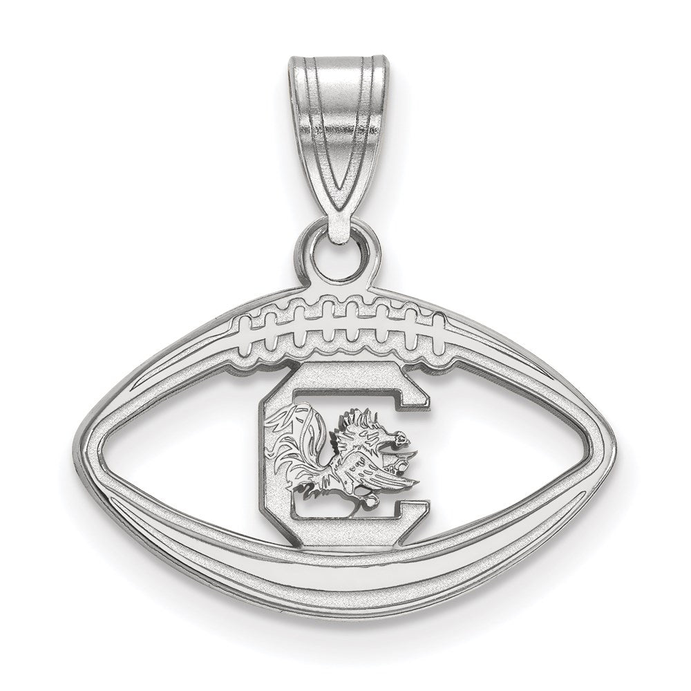 Show your Gamecocks pride with the Sterling Silver Rhodium-Plated University of South Carolina Football Pendant. Crafted from pure sterling silver and finished with a sleek rhodium coat, this pendant measures 20mm in length and 20mm wide. It features the iconic Gamecocks logo laser cut for precision detail. The 14mm charm hangs from a 6mm bail, making it easy to wear. Perfect for any USC fan, this jewelry piece combines style and team spirit. The Sterling Silver Rhodium-Plated University of South Carolina Football Pendant is a must-have for sports lovers and collectors alike.