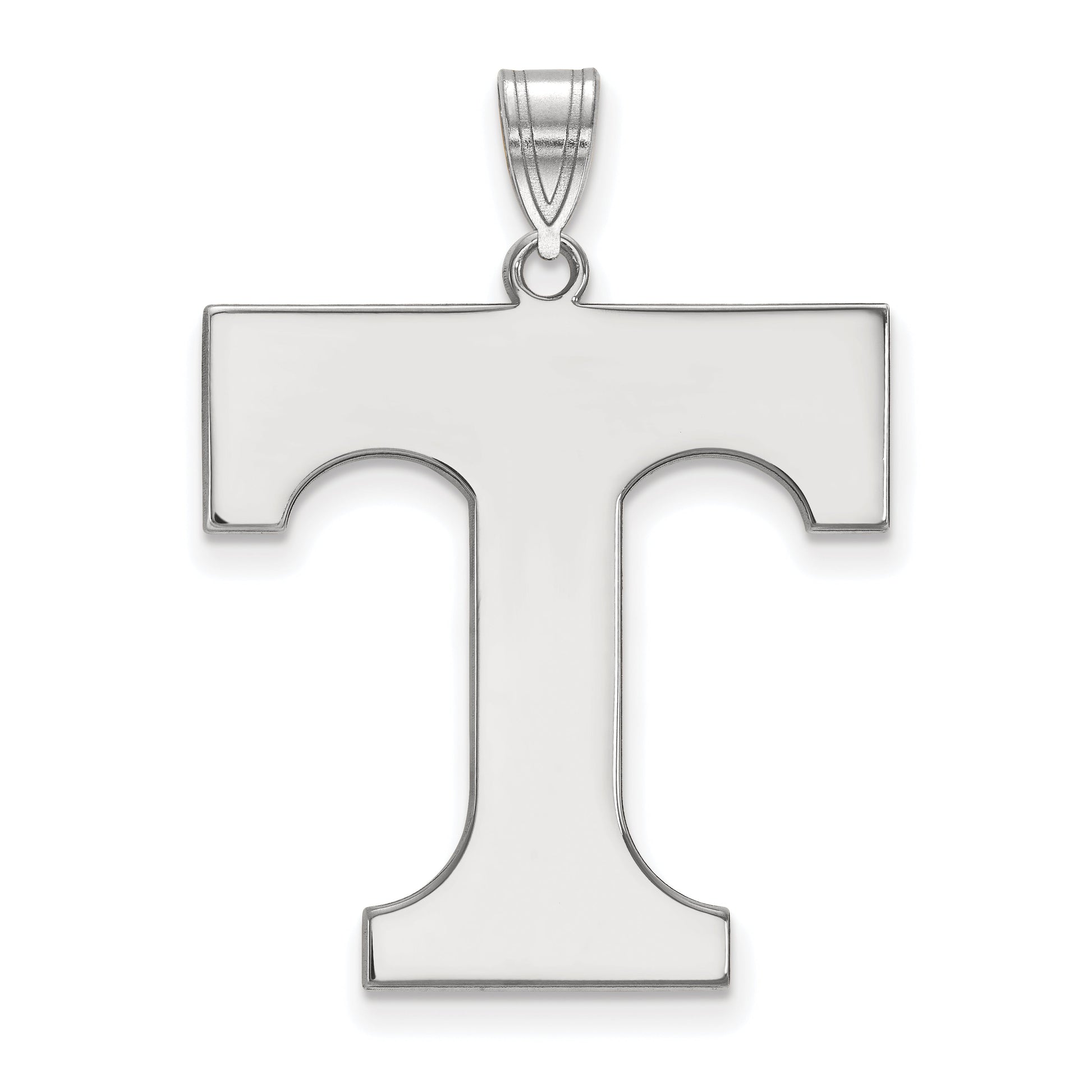 Show off your school pride with the Sterling Silver Rhodium-Plated LogoArt University of Tennessee Letter T Pendant. This eye-catching piece features a big, bold "T" that measures 31 mm long and 27 mm wide, perfect for making a statement. Crafted from pure sterling silver and finished with a bright rhodium plating, it gleams with a sleek, polished look. The laser-cut design ensures sharp details, while the 4 mm bail lets you add it to your favorite chain easily. Whether you're a student or a fan, the Sterling Silver Rhodium-Plated LogoArt University of Tennessee Letter T Pendant is a must-have for true Vols supporters.