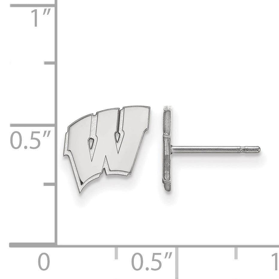Show your school pride with the Sterling Silver Rhodium-Plated Logoart University of Wisconsin Letter W Extra Small Post Earrings. These earrings feature a sleek, polished finish on genuine sterling silver, measuring 9mm long and 10mm wide. The iconic "W" logo is laser-cut for sharp detail and plated in shiny rhodium for added durability. Perfectly sized for daily wear, these earrings make a subtle statement of your Wisconsin spirit. Crafted with care and licensed by NCAA, the Logoart University of Wisconsin Earrings combine style with school pride, making them a must-have for any fan.