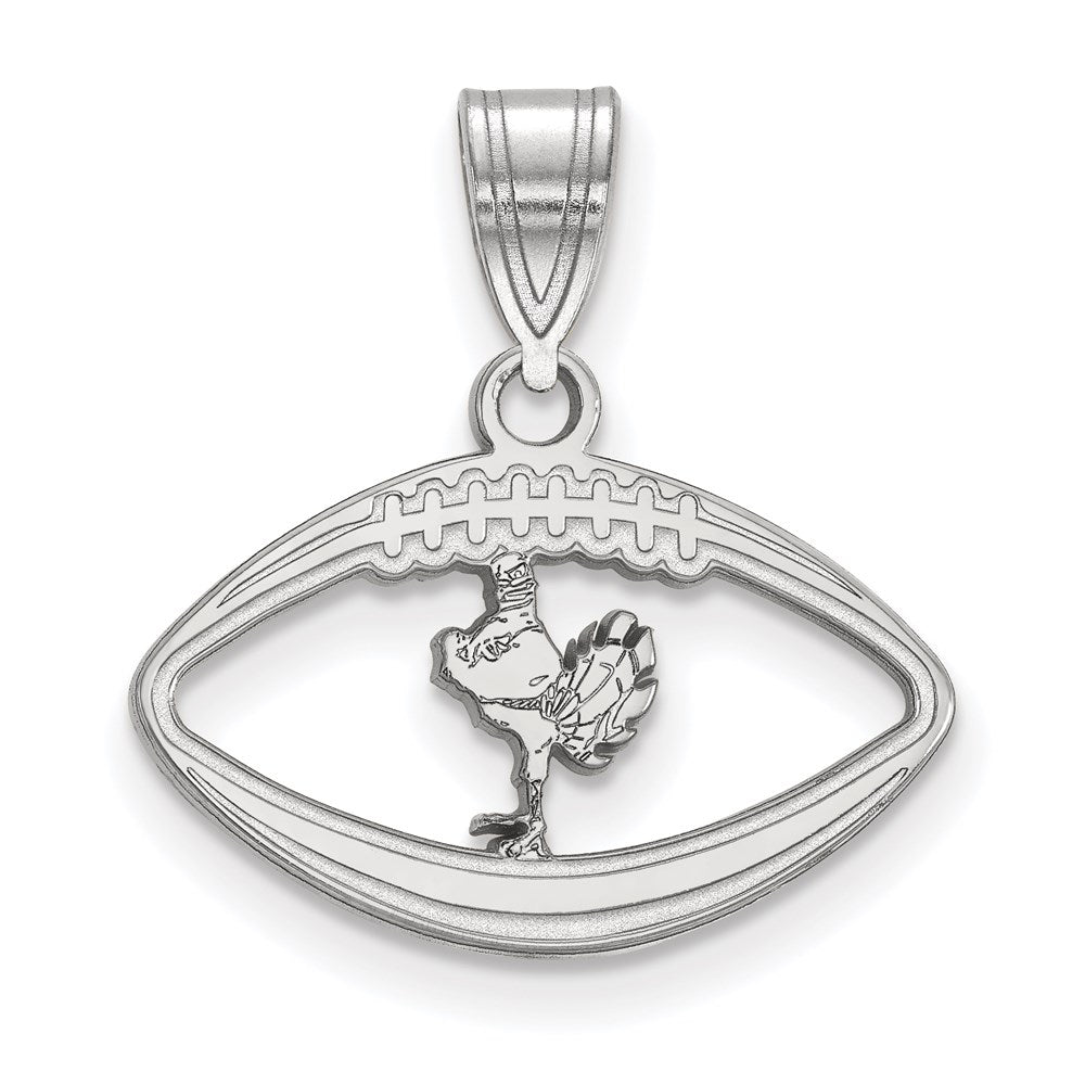 Show off your school pride with the Sterling Silver Rhodium-Plated Logoart Virginia Tech Hokiebird Football Pendant. Crafted from high-quality 925 sterling silver, it features a polished finish that shines brightly. The pendant measures 20 mm in length and 14 mm in width, showcasing the iconic Hokiebird design. It’s laser cut for precision and coated with a durable rhodium layer, giving it a sleek silver tone. Whether for game day or everyday wear, this pendant boosts your team spirit in style. The Virginia Tech Hokiebird Football Pendant is a must-have to represent your college with pride.