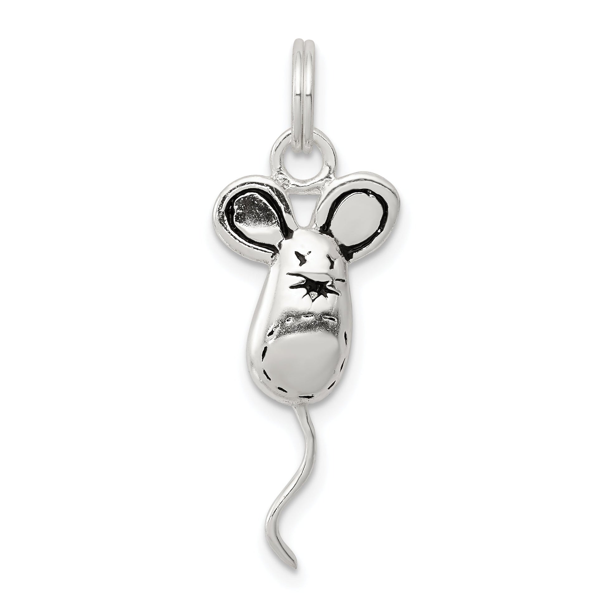 The Sterling Silver Rhodium-Plated Mouse Charm adds a playful touch to your jewelry collection. Crafted from 925 sterling silver, the charm shines with a polished finish. The rhodium plating ensures it stays radiant and tarnish-resistant. Featuring a solid cast design, the charm measures 22 mm in length and 10 mm in width, making it a standout piece. Its gleaming silver tone complements the black accent details. The charm includes a 5 mm bail for easy attachment. Capture whimsy and elegance with this distinctive Sterling Silver Rhodium-Plated Mouse Charm.