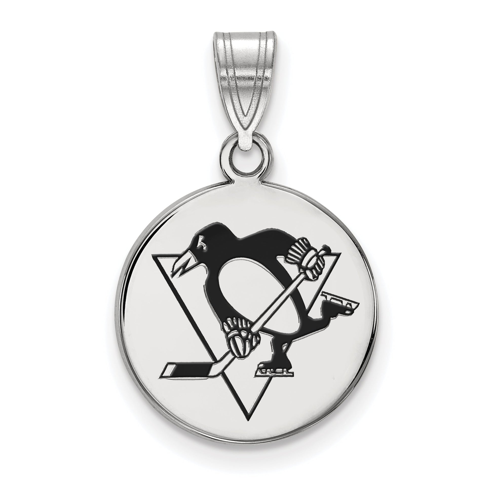 Show your team pride with the Sterling Silver Rhodium-Plated NHL Logoart Pittsburgh Penguins Pendant. Made from high-quality sterling silver and coated with rhodium, this medium-sized enameled disc displays the iconic Penguins logo. Measuring 22 mm in length with a 16 mm charm, it’s perfect for any fan’s necklace. Its unisex design suits everyone and adds a sleek, polished look to daily wear. The pendant is officially licensed and crafted in Pennsylvania, ensuring authenticity. The Silver Tone finish brings a modern touch to classic team spirit. The Pittsburgh Penguins Pendant is a must-have for true fans.