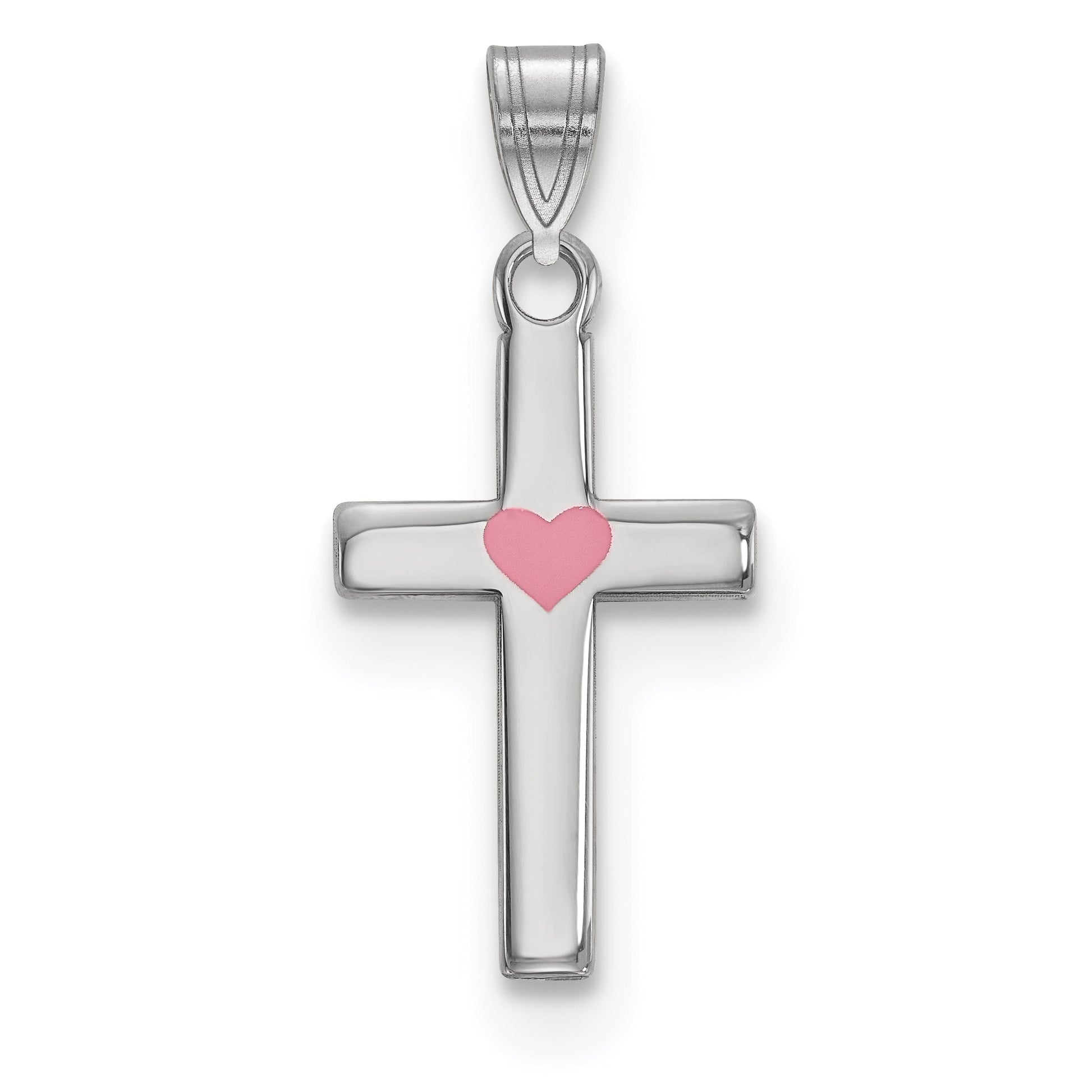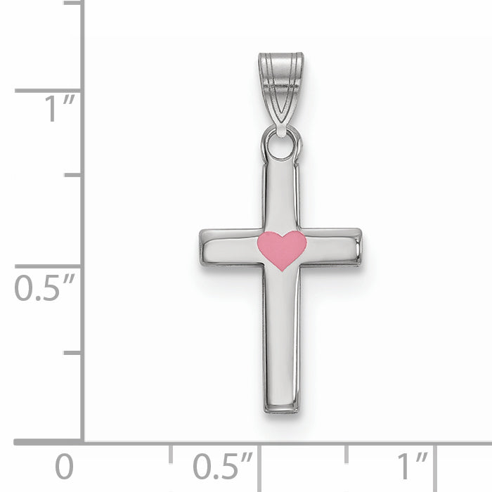 The Sterling Silver Rhodium-Plated Pink Enameled Heart Cross Charm blends elegance with meaning in stunning style. Expertly crafted from 925 sterling silver, this charm captures attention with its gleaming rhodium finish that defies tarnish. The heart-shaped cross features a vibrant pink enamel, adding a pop of color sure to brighten any jewelry collection. Sized at 18.77 mm in length and 11.58 mm in width, this charm is perfect for personalizing your necklace or bracelet. The Sterling Silver Rhodium-Plated Pink Enameled Heart Cross Charm is a warm, memorable gift for someone special.